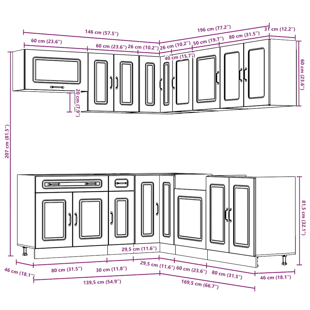11 Piece Kitchen Cabinet Set Kalmar Gloss White Engineered Wood