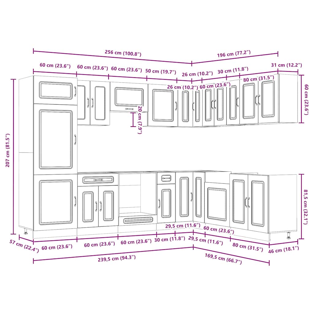 14 Piece Kitchen Cabinet Set Kalmar Artisan Oak Engineered Wood