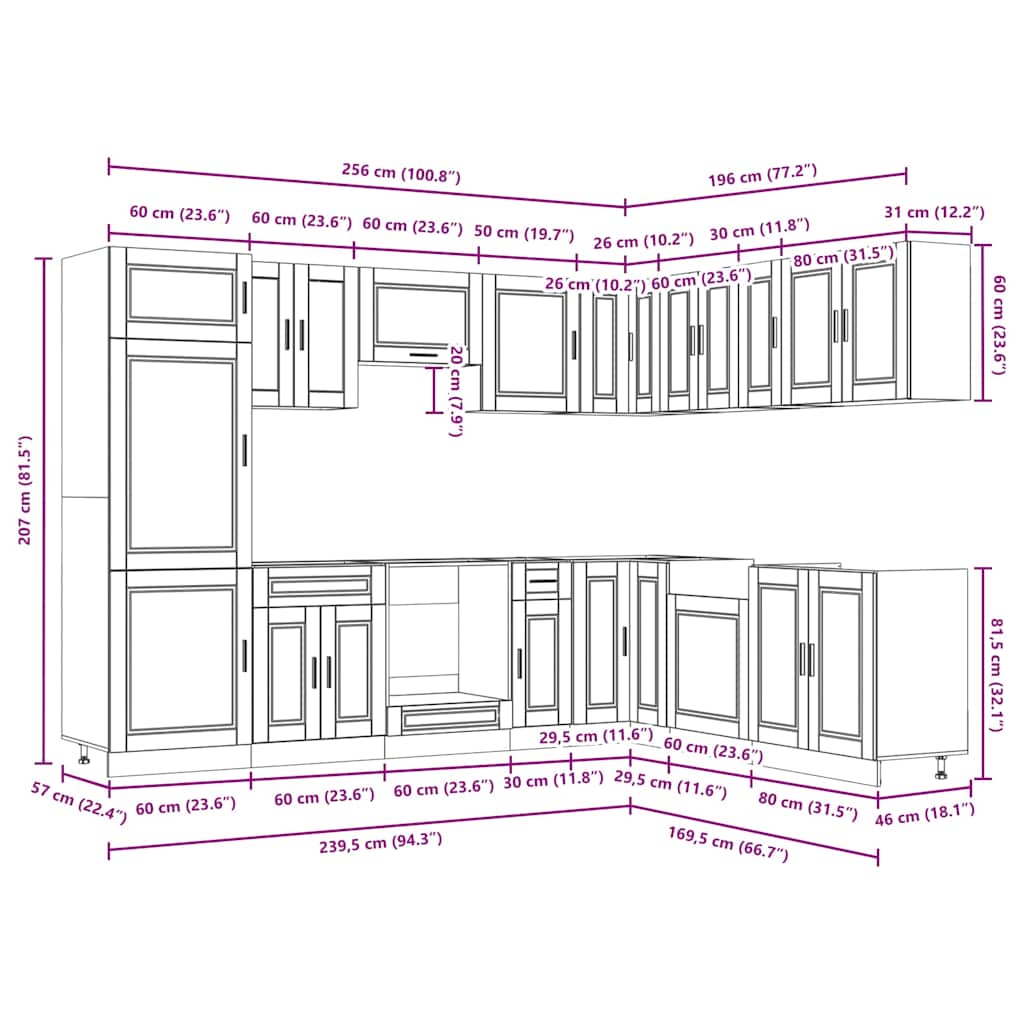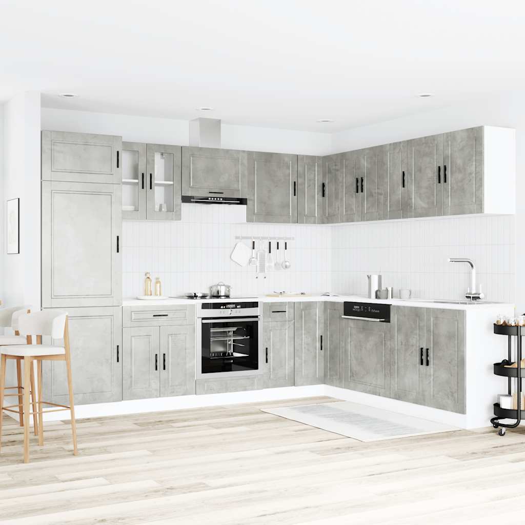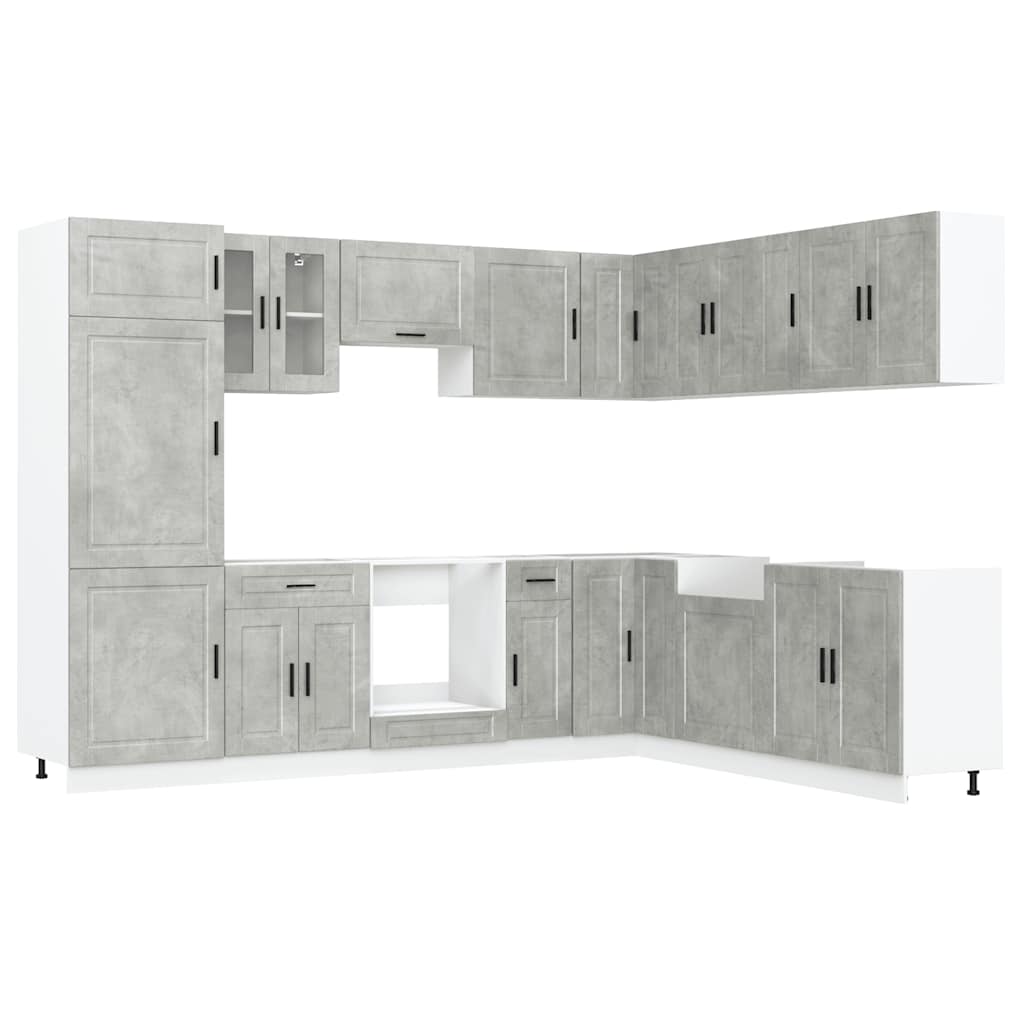 14 Piece Kitchen Cabinet Set Porto Concrete Grey Engineered Wood