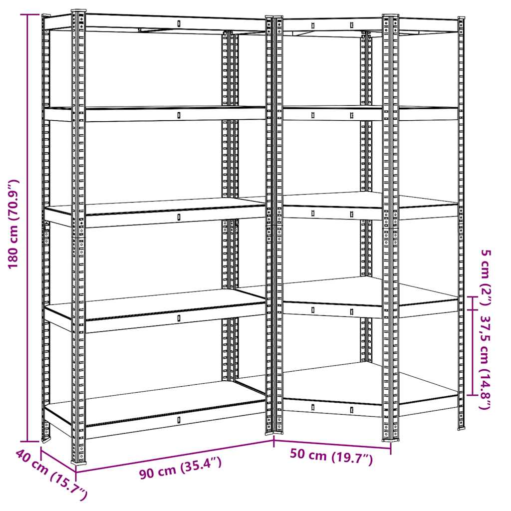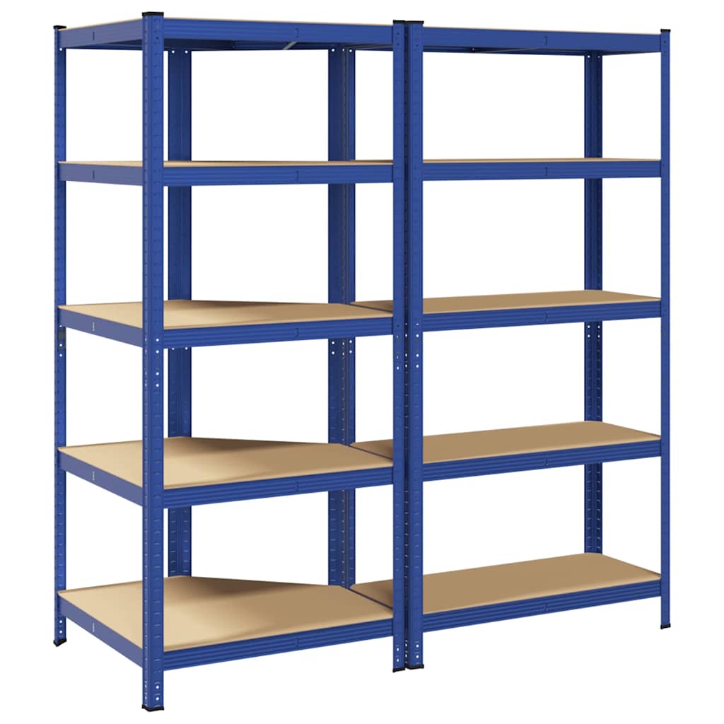 2 Piece 5-Layer Shelves Set Blue Steel&Engineered Wood