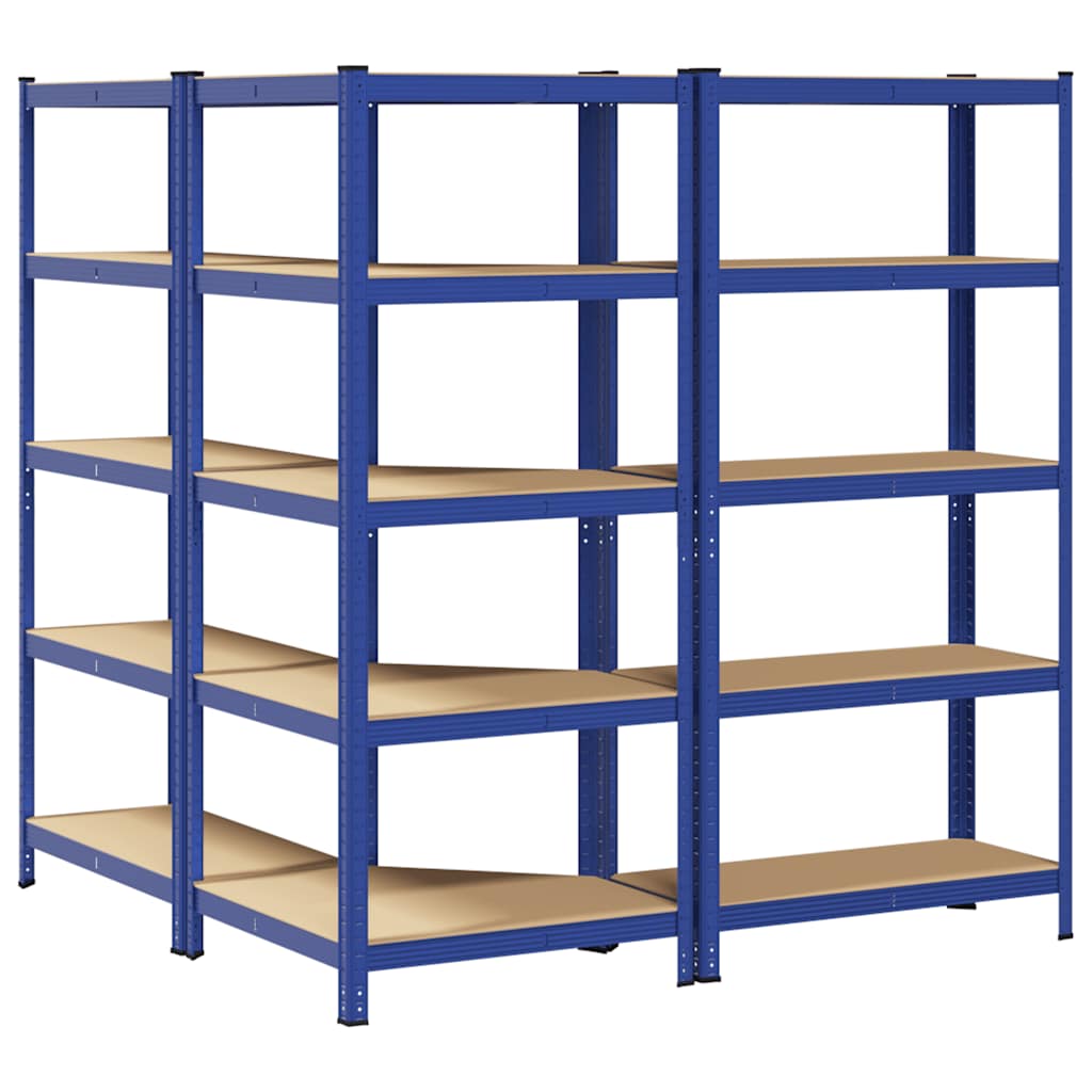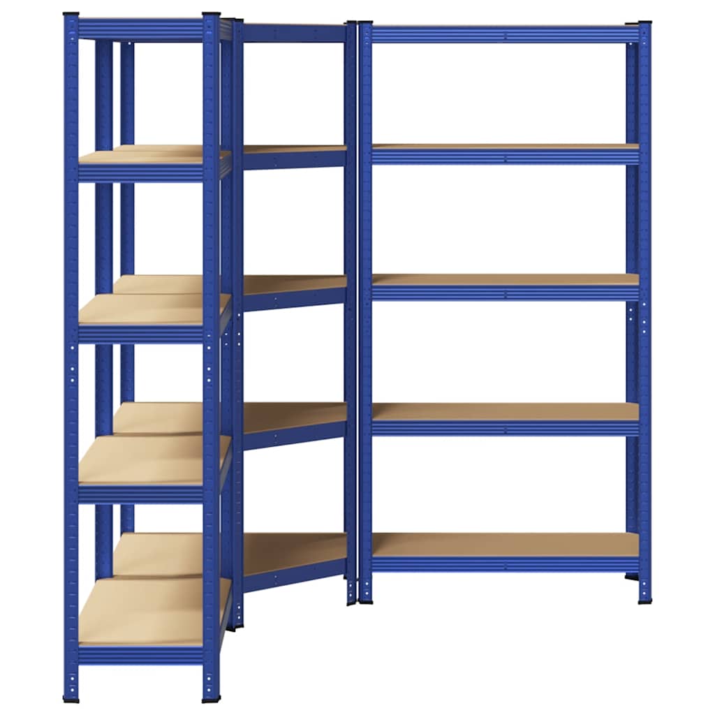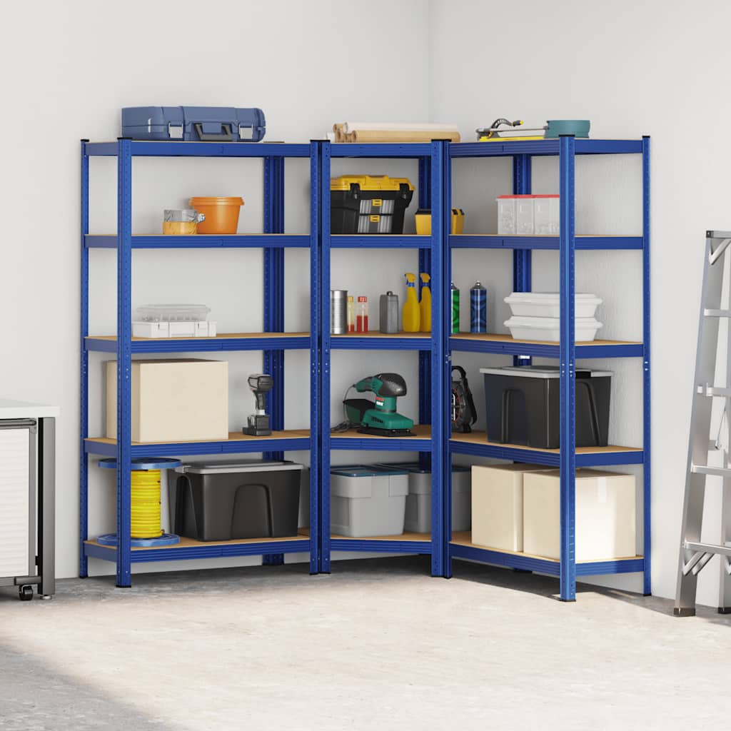 3 Piece 5-Layer Shelves Set Blue Steel&Engineered Wood