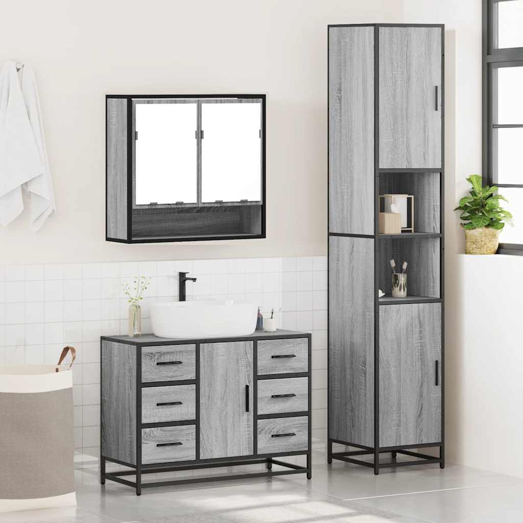 3 Piece Bathroom Furniture Set Grey Sonoma Engineered Wood