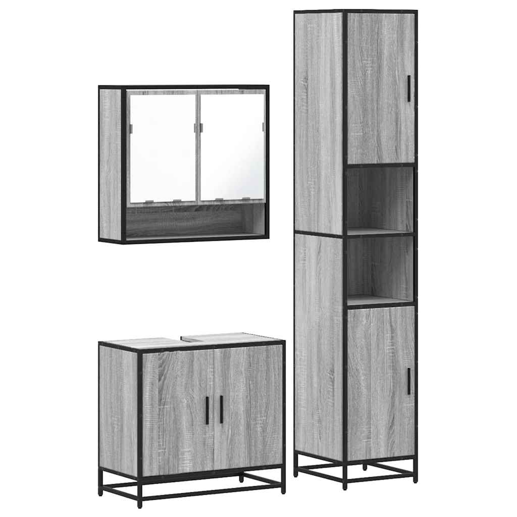 3 Piece Bathroom Furniture Set Grey Sonoma Engineered Wood