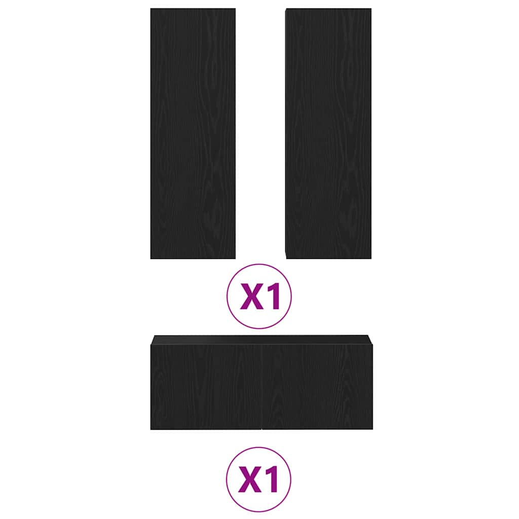 3 Piece TV Cabinet Set Wall-mounted Black Oak Engineered Wood