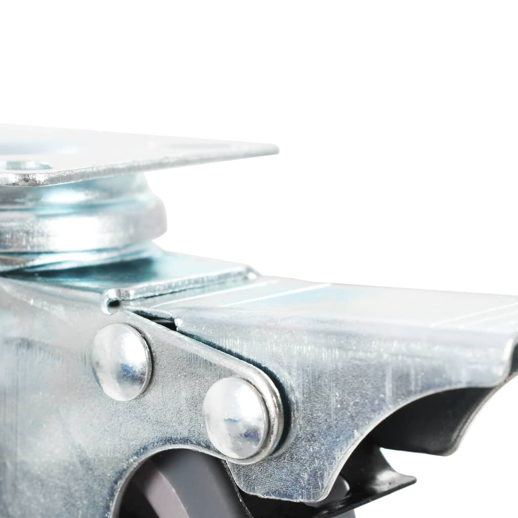 This set of 32 swivel casters with double brakes will be the perfect accessory for small equipment and furniture like workbench, trolley, coffee table, plant stand, bookshelf, shopping cart, etc. This set of 32 swivel casters, half with brakes, will be the perfect accessory for small equipment and furniture like workbench, trolley, coffee table, plant stand, bookshelf, shopping cart, etc. These casters are made of TPR (thermoplastic rubber) which is distinguished by a good shock and vibration resistance, enabling these casters to run smoothly and quietly. Additionally, their soft surfaces effectively protect your floor from scratching. Besides, the zinc-coated iron frame is highly rust-resistant and thus adds to the catser's sturdiness and durability. These swivel casters are equipped with brakes for flexible control. Each caster has a maximum loading capacity of up to 35 kg. Delivery includes 32 swivel casters, half with brakes.