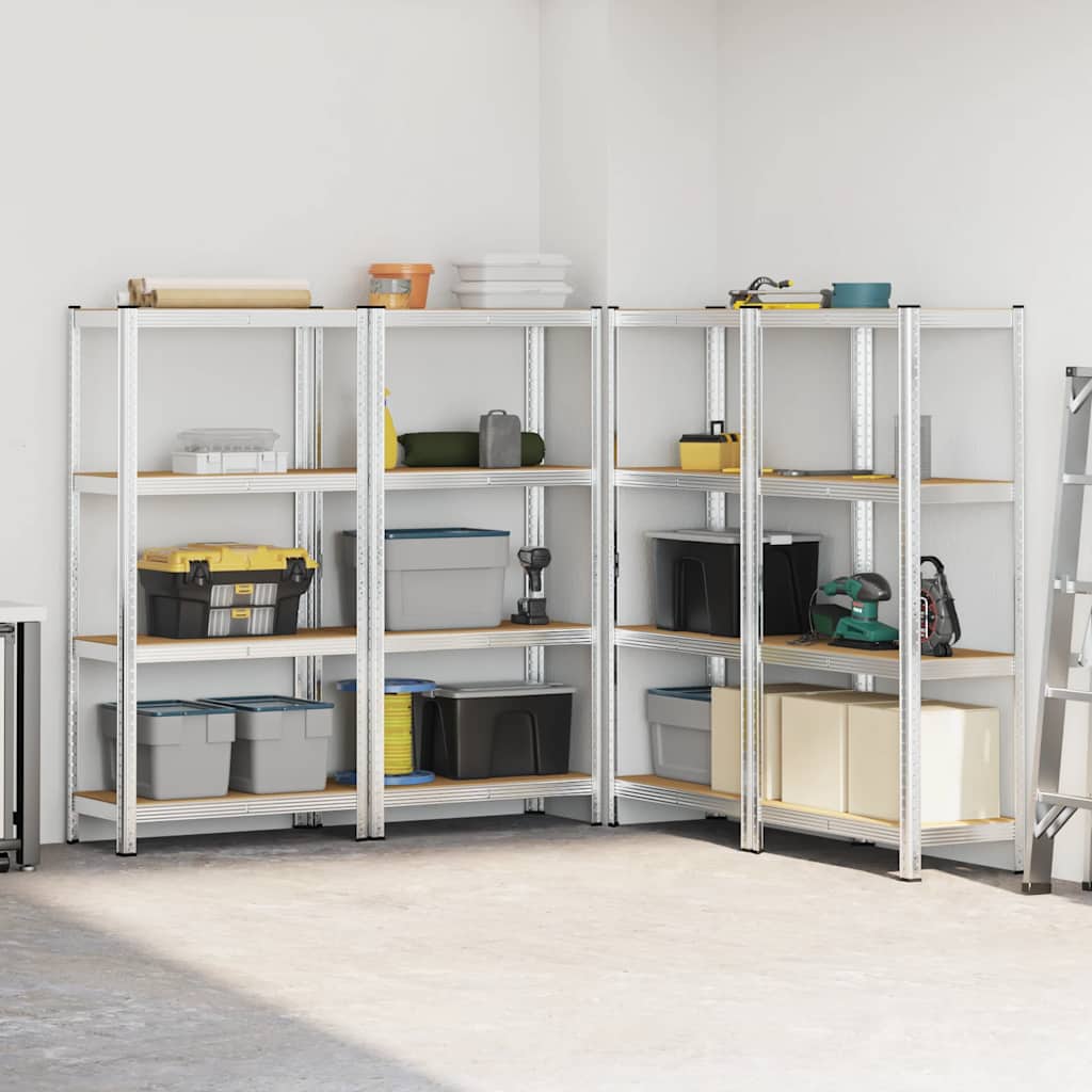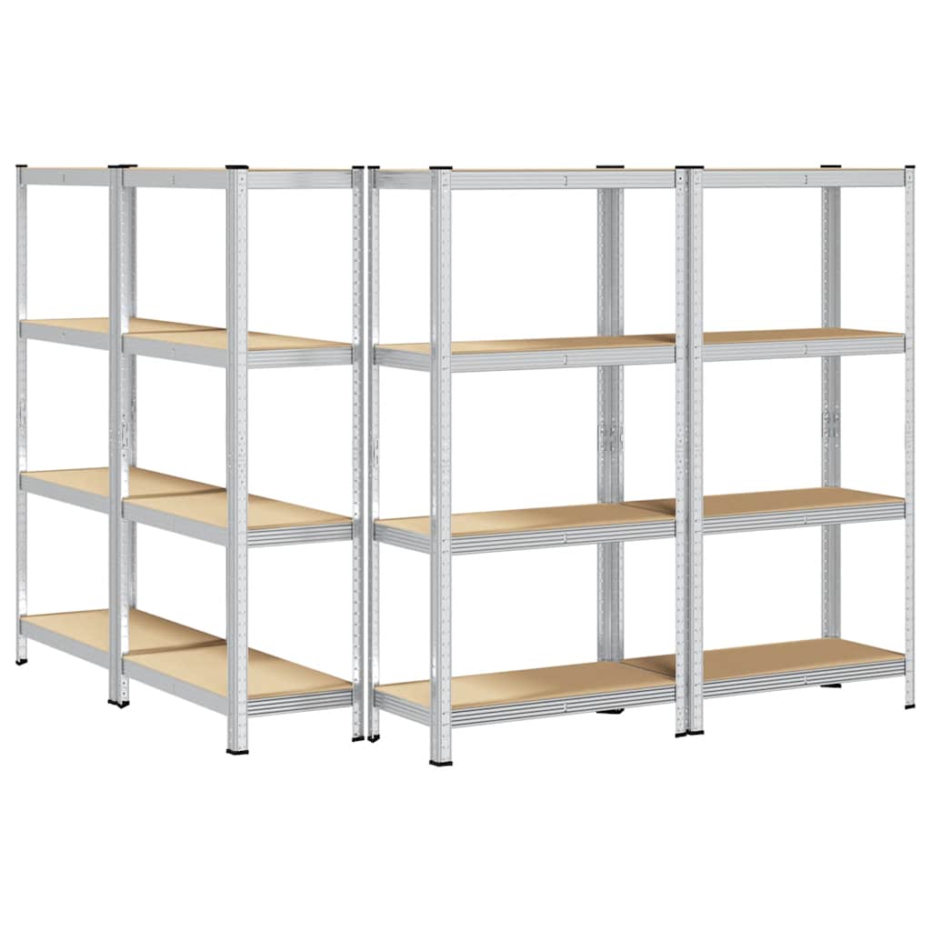 4-Layer Storage Shelves 4 pcs Silver Steel&Engineered Wood