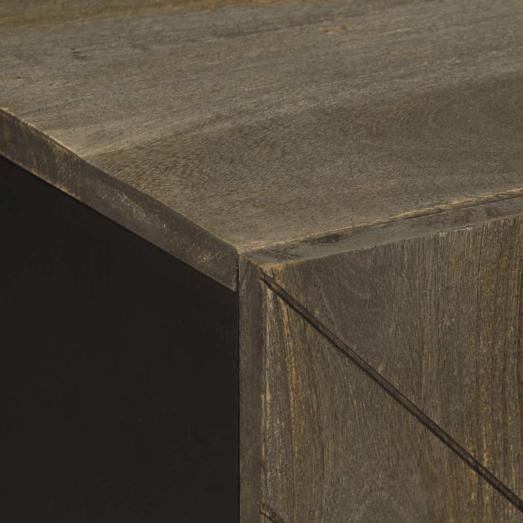 - Material: Solid mango wood with grey finish sanblasting look, engineered wood, metal