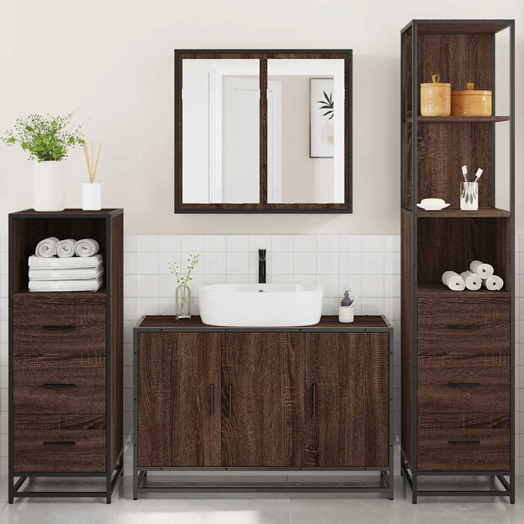 4 Piece Bathroom Furniture Set Brown Oak Engineered Wood