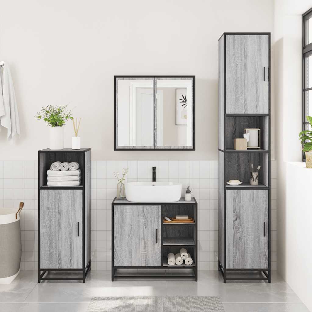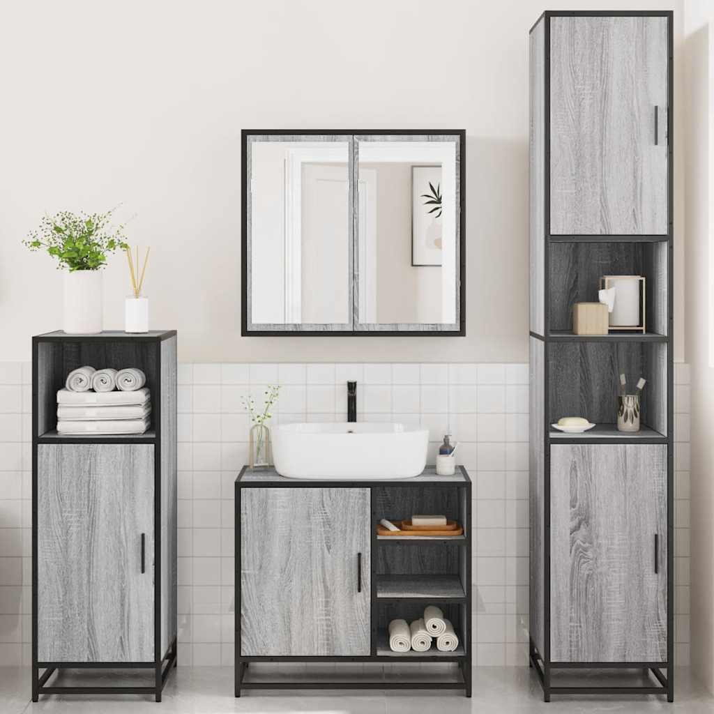 4 Piece Bathroom Furniture Set Grey Sonoma Engineered Wood