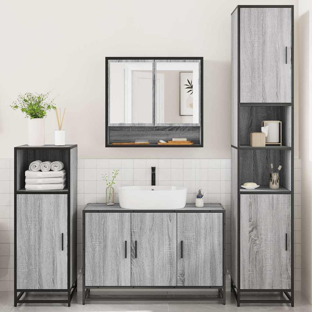 4 Piece Bathroom Furniture Set Grey Sonoma Engineered Wood