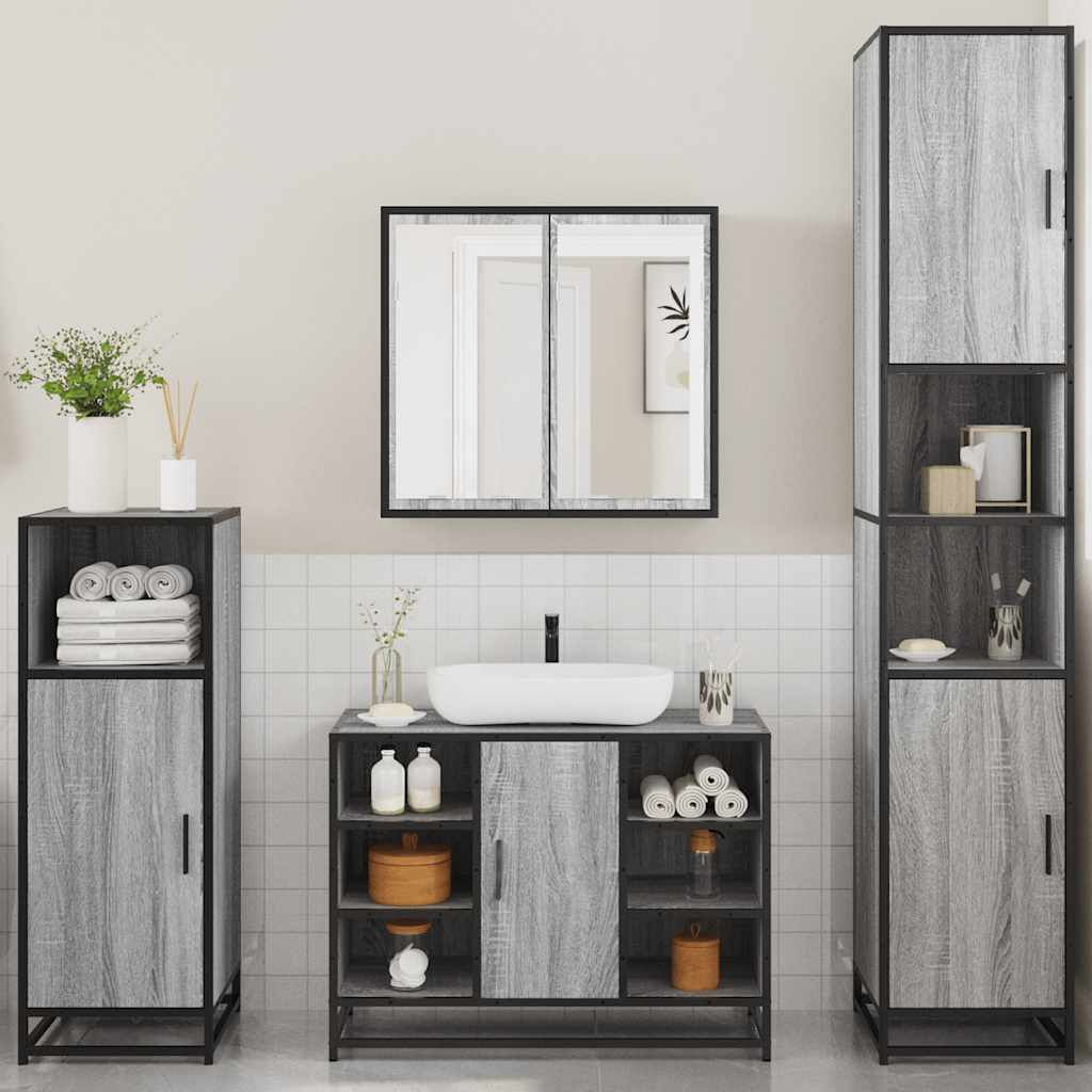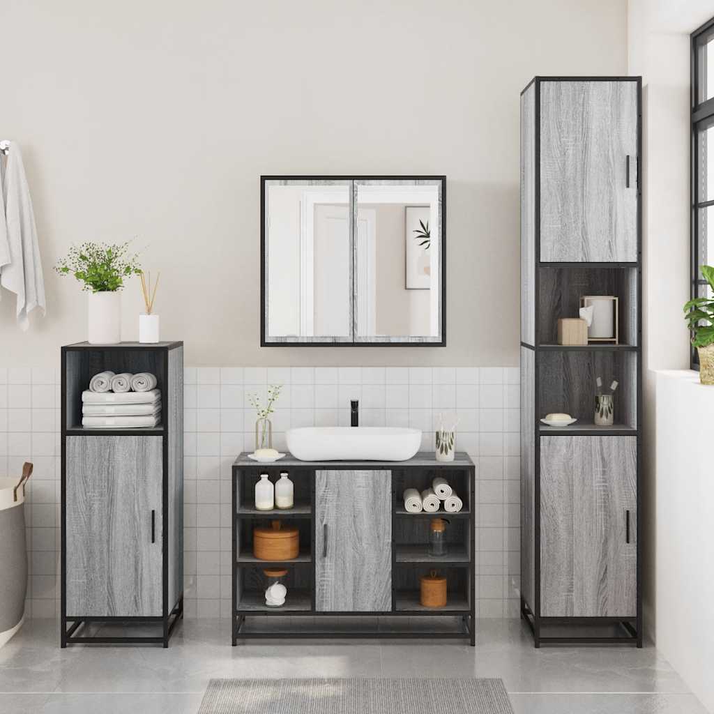 4 Piece Bathroom Furniture Set Grey Sonoma Engineered Wood