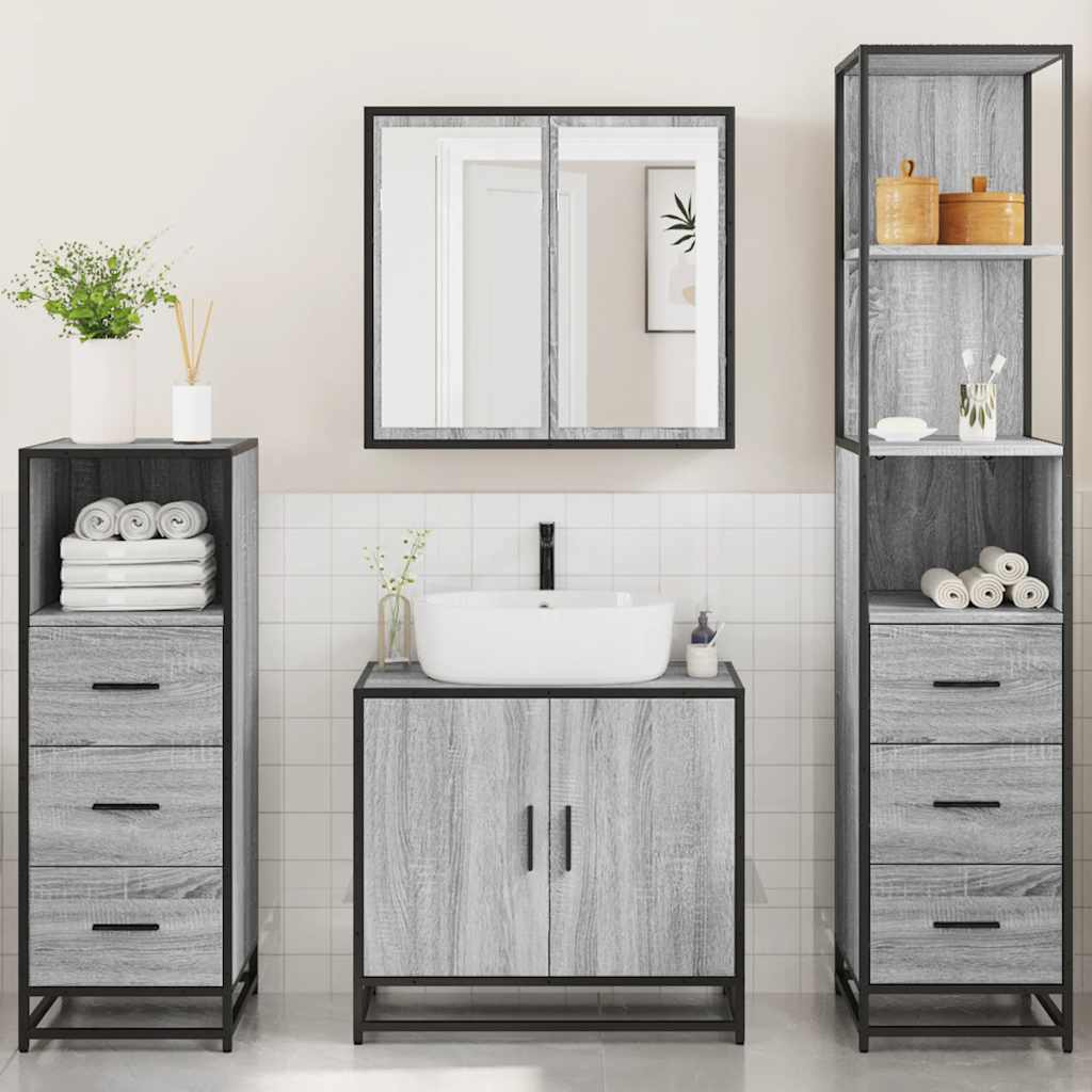4 Piece Bathroom Furniture Set Grey Sonoma Engineered Wood
