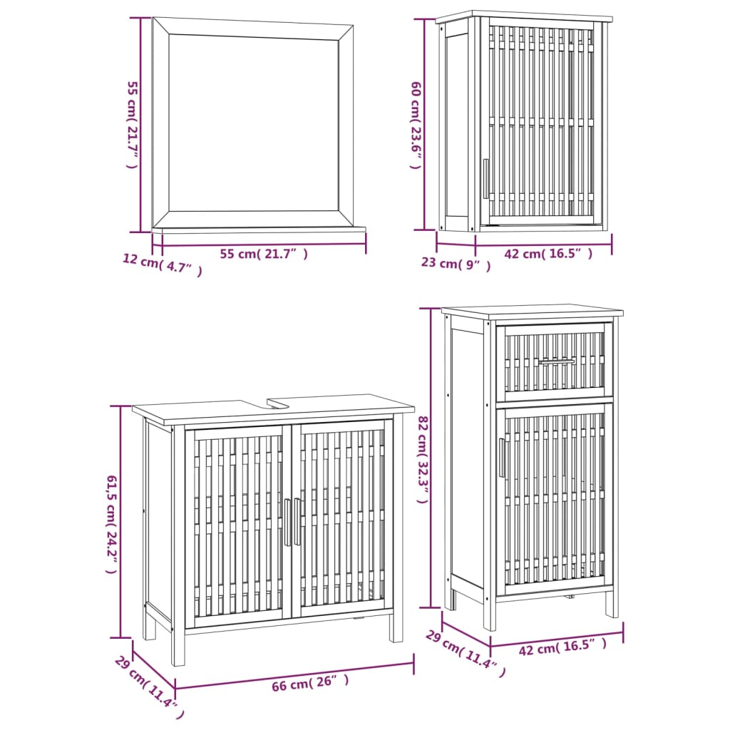 4 Piece Bathroom Furniture Set Solid Wood Walnut