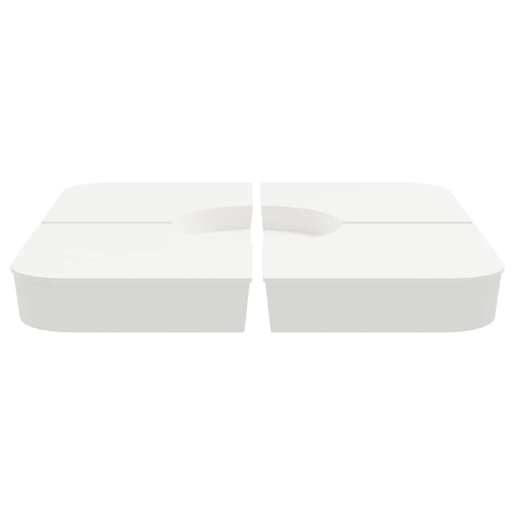 This parasol base set offers a sturdy and reliable foundation to ensure your umbrella remains stable and upright. Durable material: The parasol base is made of polypropylene to ensure high durability, wearability, and longevity.Enhanced stability: Fill the base with the amount of sand that suits your needs to create a reliable foundation, ensuring your umbrella stays securely in place. Each individual base with sand is 25 kg, and the total should be up to 100 kg.Easy to use: This parasol base set consists of four plates that can simply be put together to fix your crossbar base (not included). With a wide opening, the parasol base is simple to fill or empty with sand.Detachable and portable: Thanks to its 4-plate design, this parasol base set is detachable when not in use and can be stacked for convenient transit.Wide applications: The parasol base set is suitable for poolside, patio, garden, or any outdoor space.