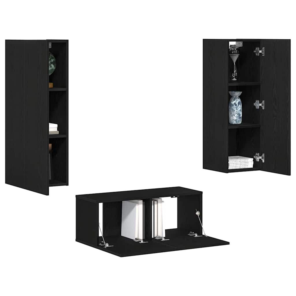 4 Piece TV Cabinet Set Black Oak Engineered Wood