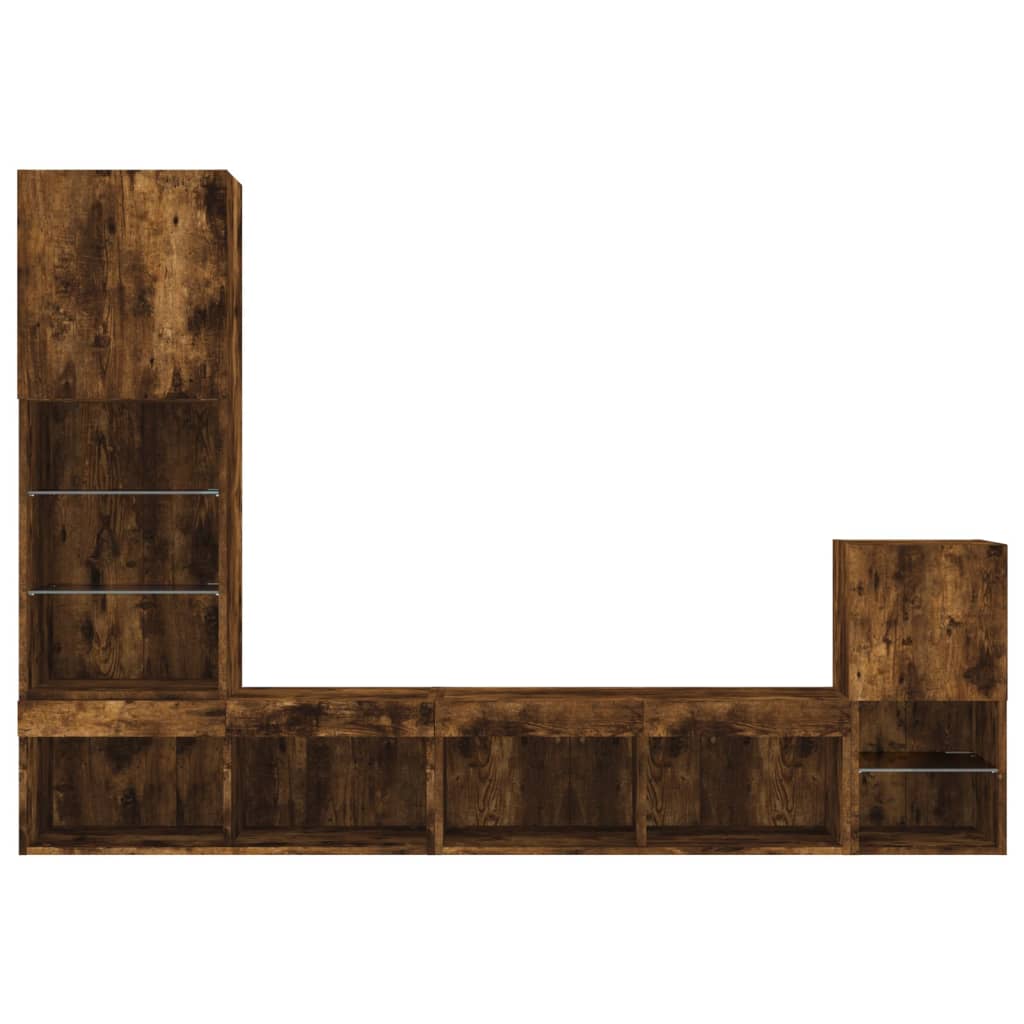 4 Piece TV Wall Units with LED Smoked Oak Engineered Wood