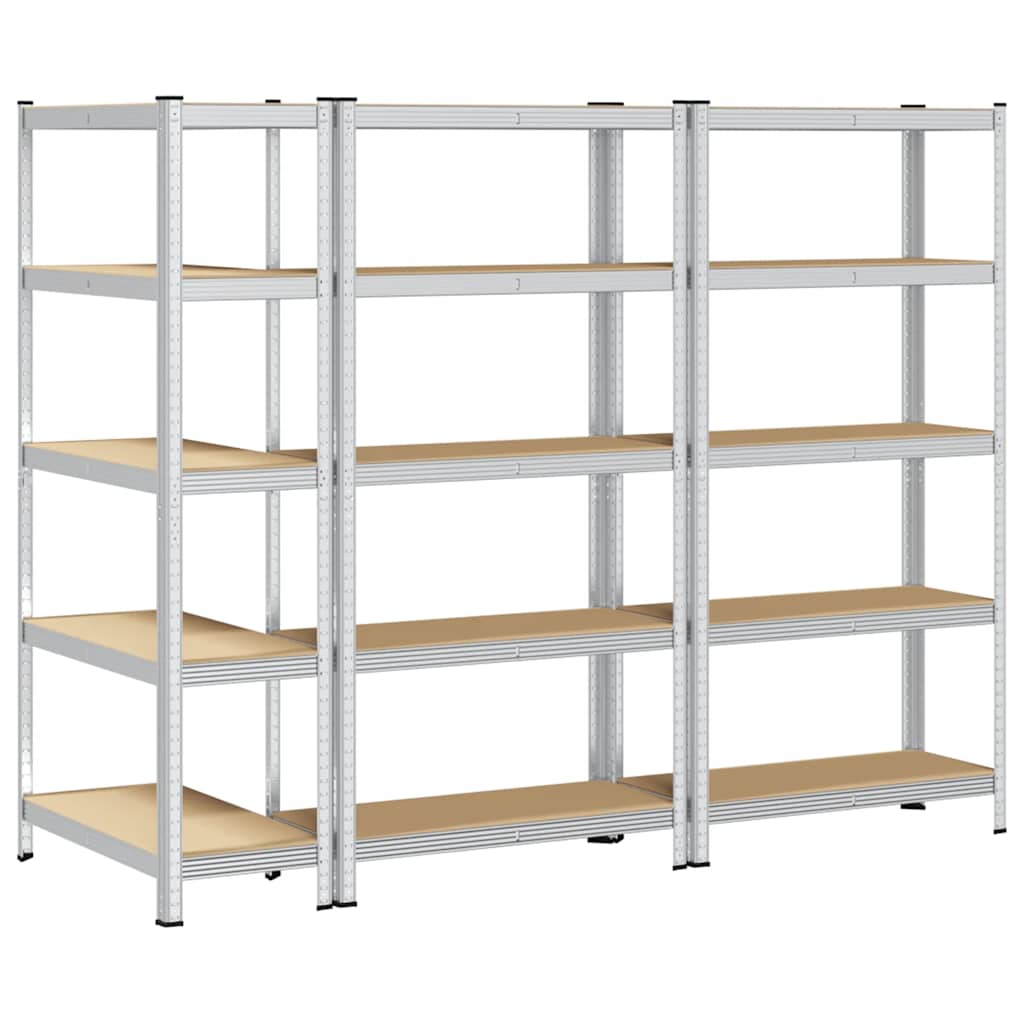 5-Layer Storage Shelves 3 pcs Silver Steel&Engineered Wood