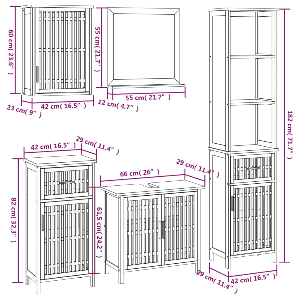 5 Piece Bathroom Furniture Set Solid Wood Walnut
