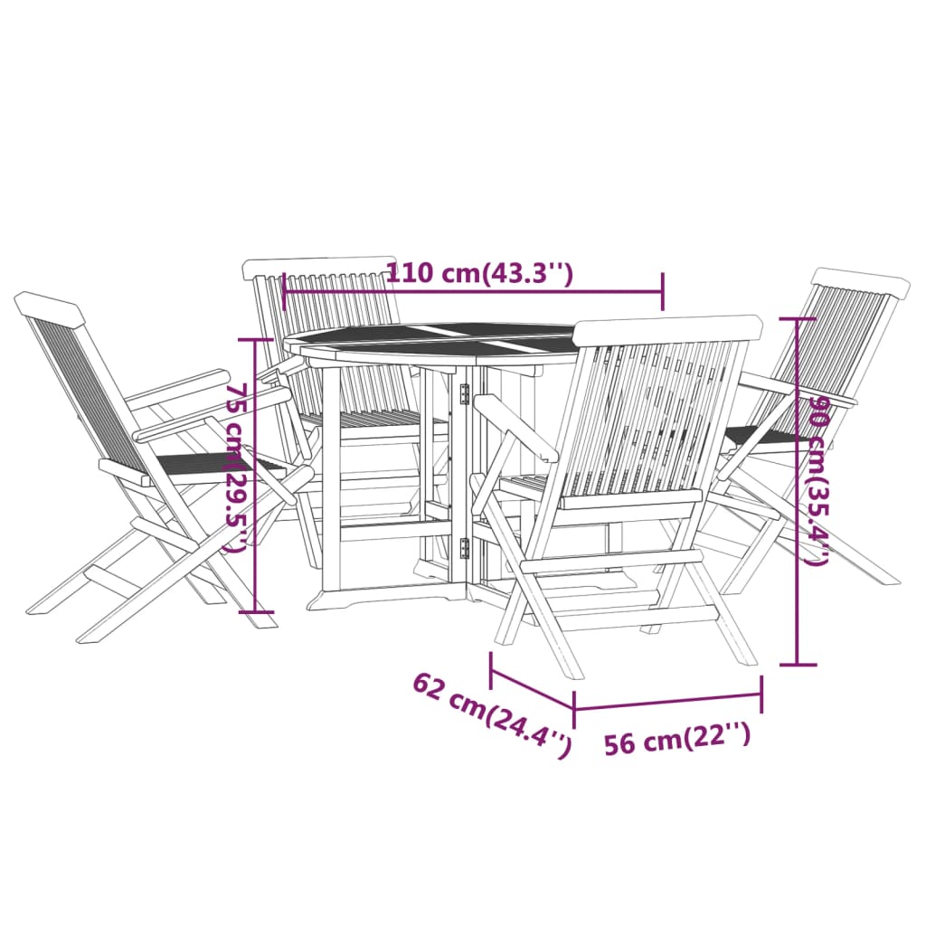 5 Piece Folding Outdoor Dining Set Solid Wood Teak