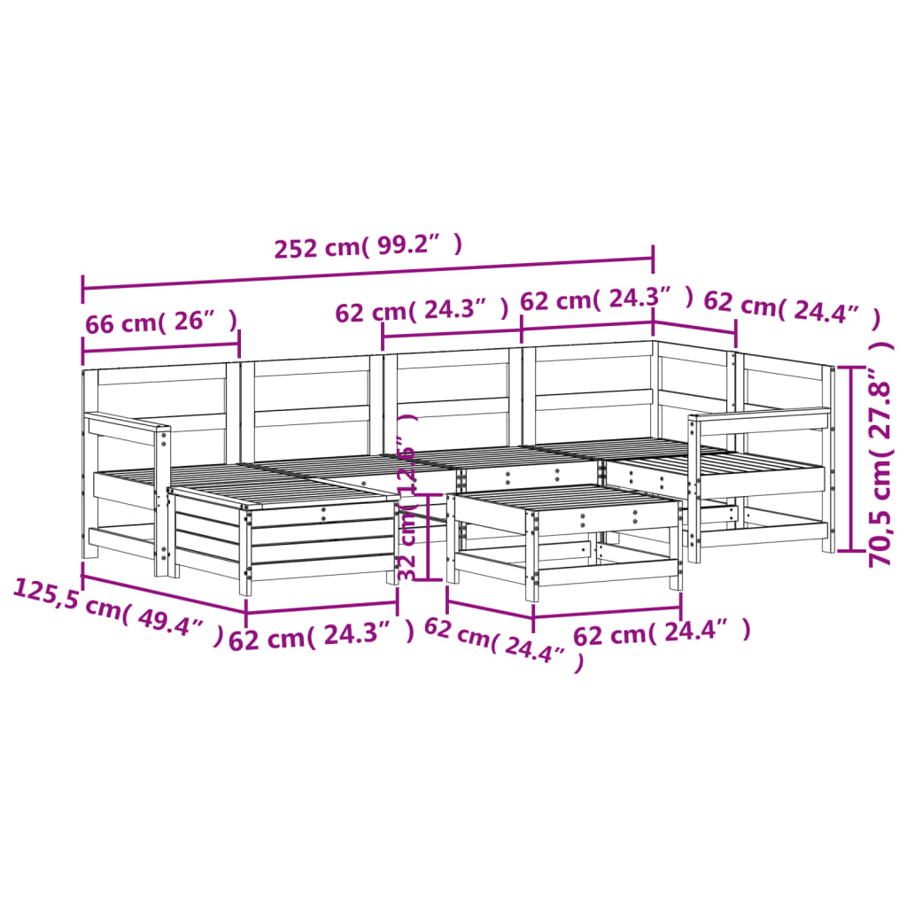 7 Piece Garden Sofa Set White Solid Wood Pine