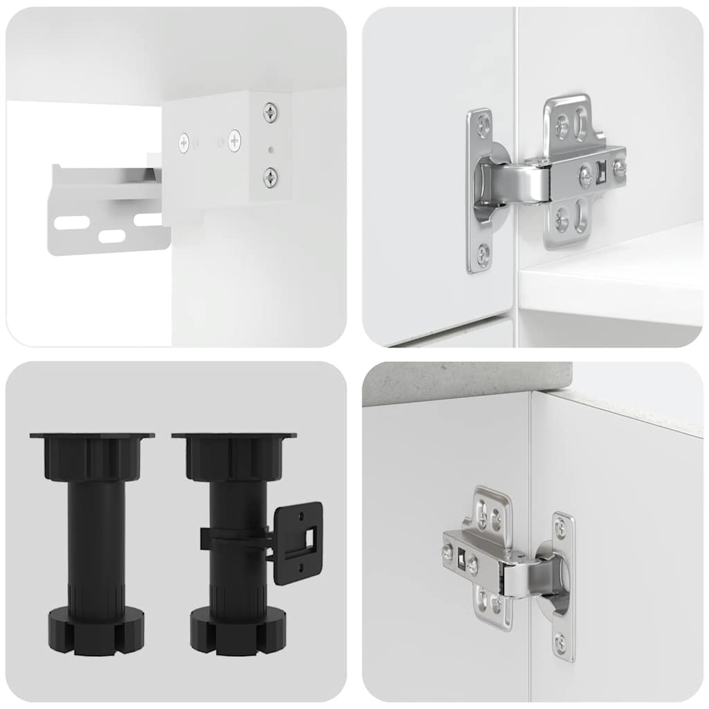 This 7-piece kitchen cabinet set, with its elegant design, optimises your kitchen space and provides ample storage space for your personal belongings! Stable and durable material: Engineered wood is a durable and stable material with a smooth surface that is resistant to moisture, warping, and splitting, making it a reliable choice for a variety of projects.Ample storage space: The kitchen cabinet set has many compartments, and offers sufficient space to store bowls, plates, pots, and other kitchen appliances.Adjustable feet: The bottom cabinets feature adjustable feet that can be adjusted in height to suit your kitchen layout.Easy to maintain: Thanks to its smooth surface, these kitchen cabinets are easy to clean with a damp cloth and require less maintenance. Warning:To prevent it from tipping over, this product must be used with the provided wall attachment device. Good to know:Screw(s) and plug(s) for inside the wall are not included. Seek and use screw(s) and plug(s) suitable for your walls. If you are uncertain, seek professional advice. Read and follow each step of the instruction carefully.The worktop, sink and faucet are not included in the delivery.
