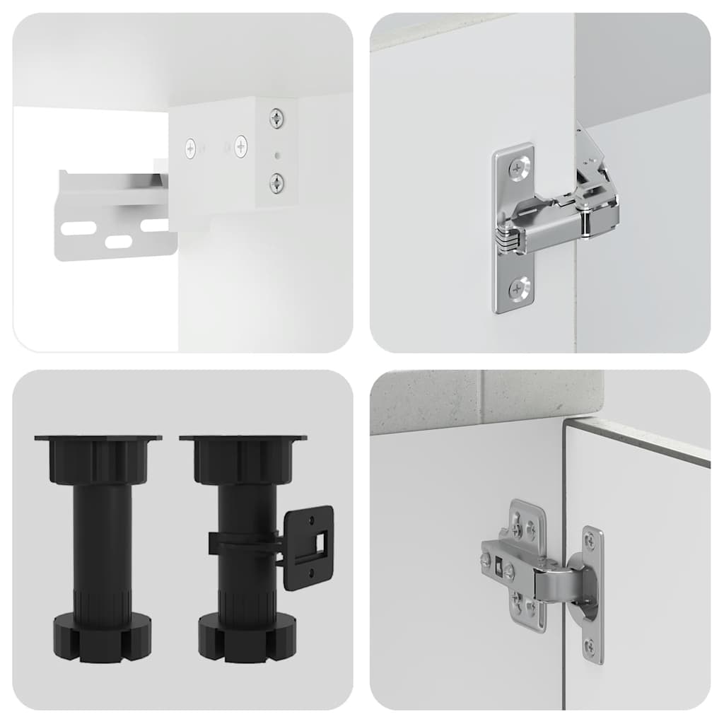 This 8-piece kitchen cabinet set, with its elegant design, optimises your kitchen space and provides ample storage space for your personal belongings! Stable and durable material: Engineered wood is a durable and stable material with a smooth surface that is resistant to moisture, warping, and splitting, making it a reliable choice for a variety of projects.Ample storage space: The kitchen cabinet set has many compartments, and offers sufficient space to store bowls, plates, pots, and other kitchen appliances.Adjustable feet: The bottom cabinets feature adjustable feet that can be adjusted in height to suit your kitchen layout.Easy to maintain: Thanks to its smooth surface, these kitchen cabinets are easy to clean with a damp cloth and require less maintenance. Warning:To prevent it from tipping over, this product must be used with the provided wall attachment device. Good to know:Screw(s) and plug(s) for inside the wall are not included. Seek and use screw(s) and plug(s) suitable for your walls. If you are uncertain, seek professional advice. Read and follow each step of the instruction carefully.The worktop, sink and faucet are not included in the delivery.