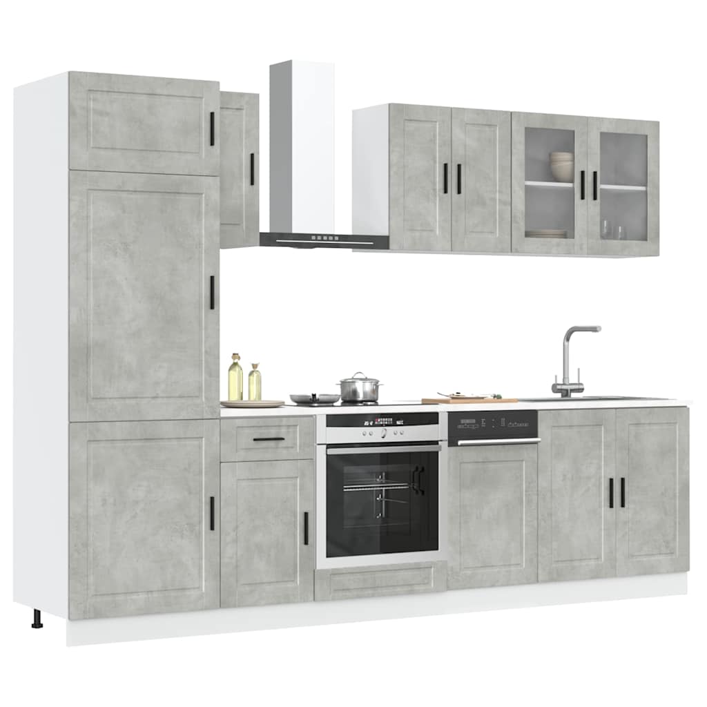 8 Piece Kitchen Cabinet Set Kalmar Concrete Grey Engineered Wood