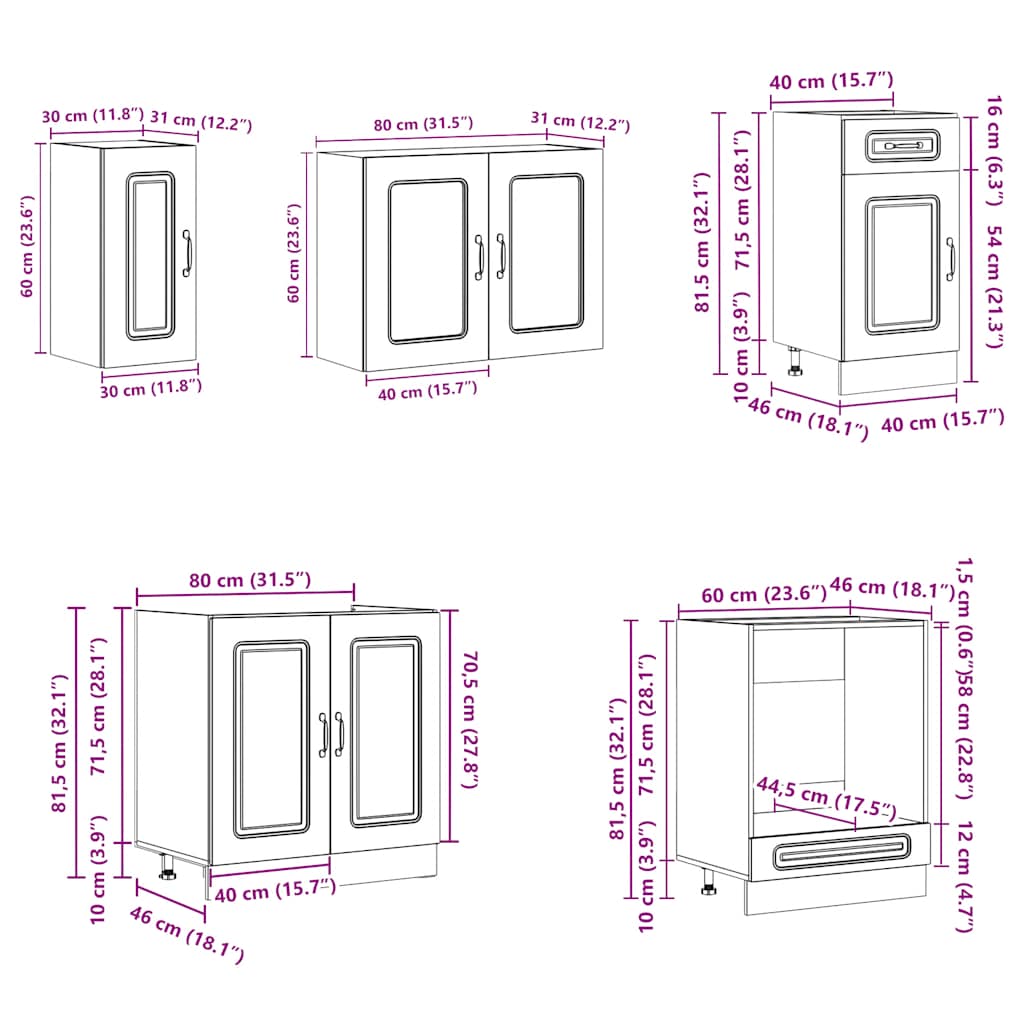 - 1 x Oven cabinet: 60 x 46 x 81.5 cm (W x D x H)