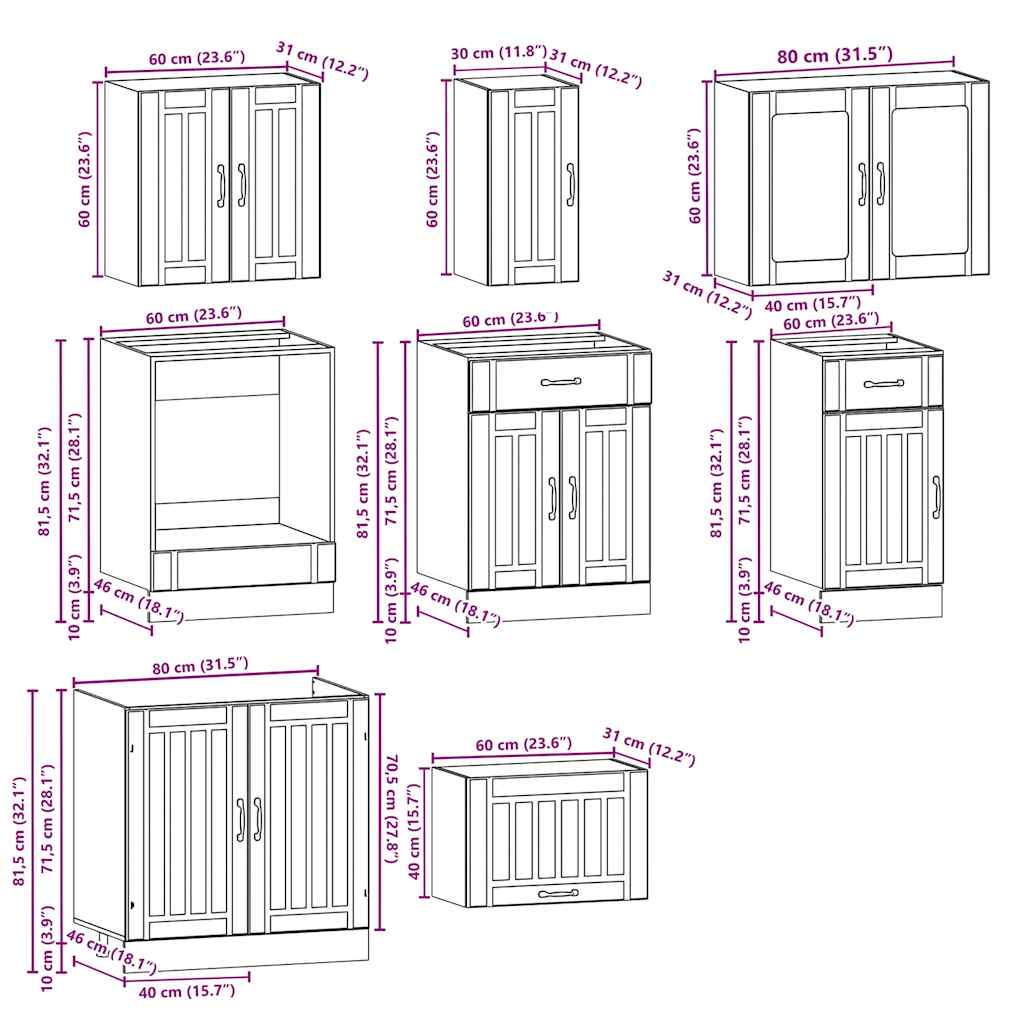 8 Piece Kitchen Cabinet Set Lucca Sonoma Oak Engineered Wood