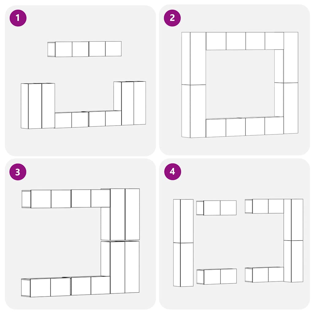 TV Cabinet Set 8 pcs Black oak Medium Engineered wood