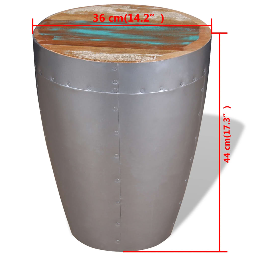 This antique-style wooden stool will make a unique addition to your kitchen or dining room. This vintage-style side table is made of solid reclaimed wood, which means that every piece of furniture is unique and slightly different from the next. Furniture made from reclaimed wood has the characteristics of different woods like teak, mango wood and acacia. Reclaimed wood is solid, stable, durable, and beautiful. Signs of wear and visible grain structure give each piece its own history and a unique look. The top of the stool is handmade, and the craftsmanship adds to its spectacular retro style. Every step of the process is carried out with the greatest care, be it polishing, painting or lacquering. This stylish stool is not only comfortable to sit on, but also highly decorative thanks to its striking aluminium base in the aviator style. It can also be used as a side table to place food or drinks, or to display decorative objects like photo frames, or even potted plants. Important note: colours vary from piece to piece, making each of our stools unique. The delivery is random, ensuring the exclusivity and individuality of your product.