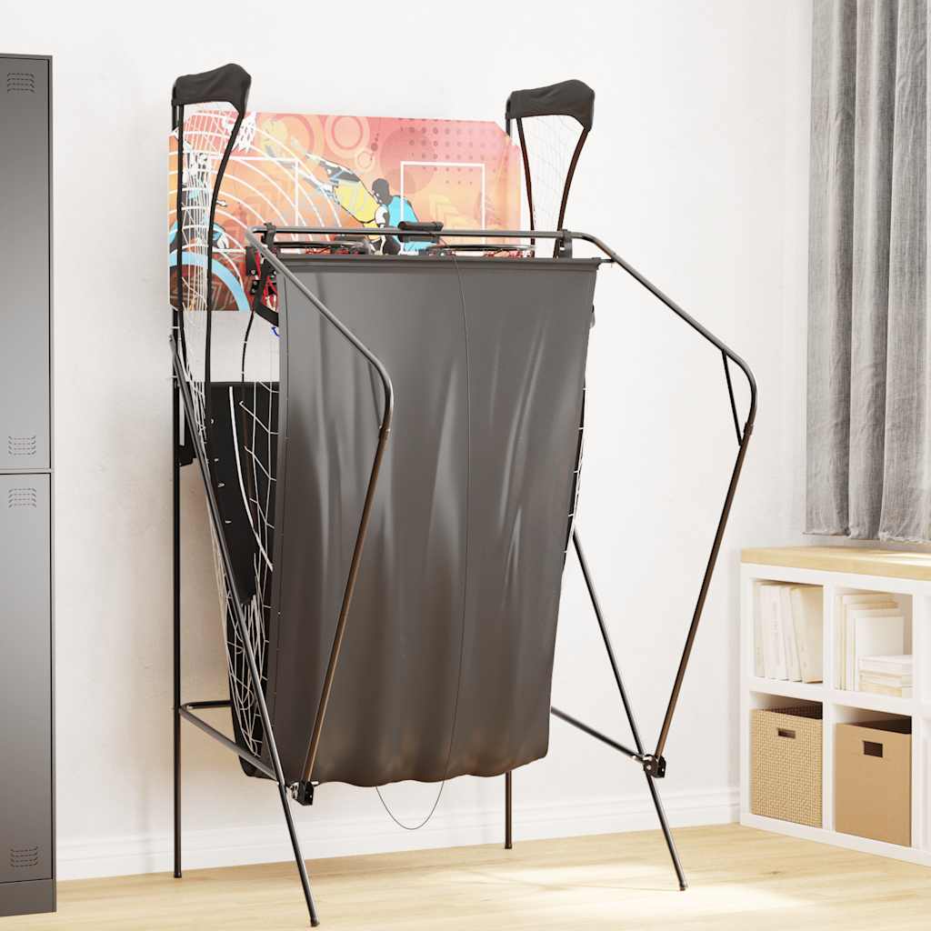 This basketball arcade machine is an ideal choice to provide hours of fun for family and friends at parties or other events. Dual-player mode: This machine features 2 basketball hoops, allowing for multiple-player interactions, making it ideal for parties and family gatherings.Electronic scoring system: The basketball machine is equipped with an automatic electronic scoring system and LED display. It tracks scores accurately, enhancing the arcade-style experience.Sturdy and durable material: This basketball machine is made of a durable iron frame and reinforced hoops, ensuring long-lasting use for both kids and adults.Space-saving and foldable: The basketball arcade machine offers a foldable design, making it easy to store when not in use, saving space in your home or game room. Warning:This product contains small parts that may pose a choking hazard and should be used only under direct adult supervision.Warning:This toy has sharp functional edges and functional points.