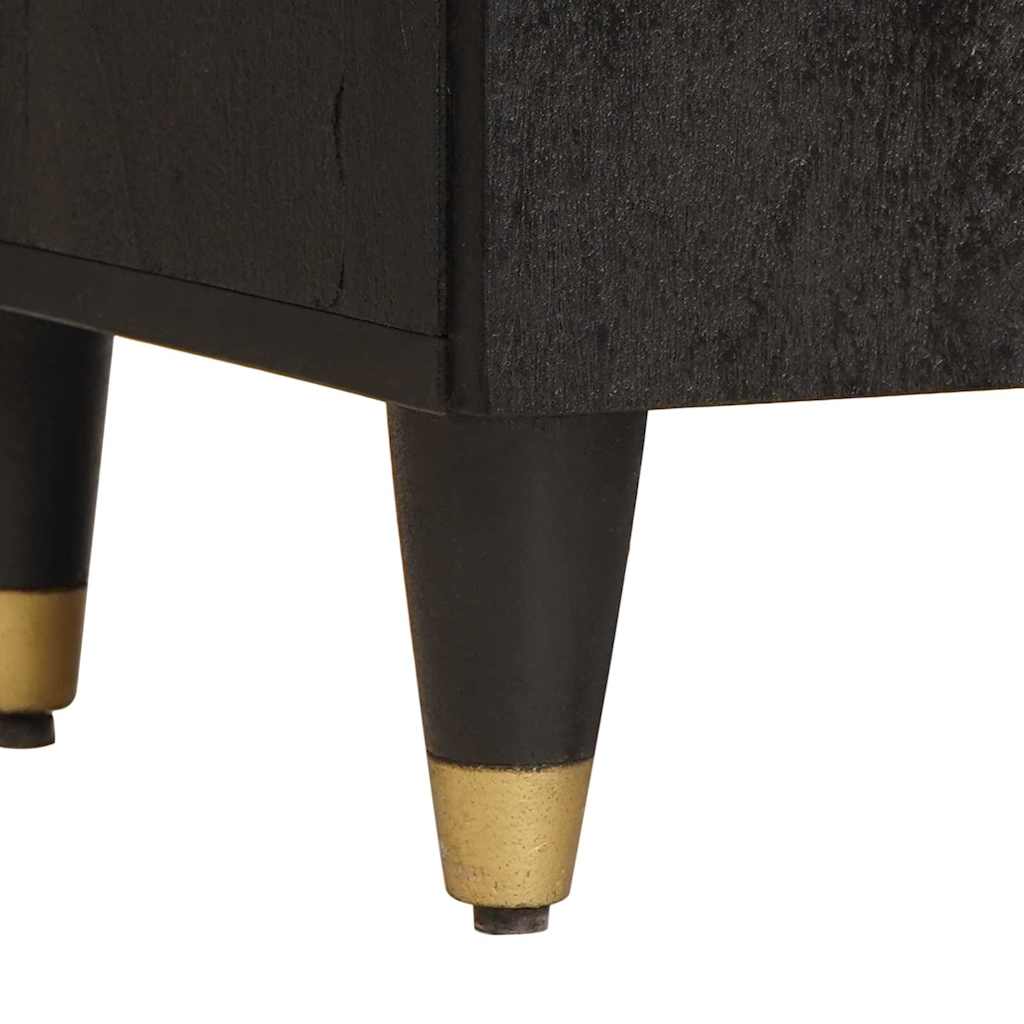 This Wooden Bathroom Cabinet is a versatile storage solution characterized by its modern design, making it ideal for various indoor uses. Its clean, rectangular shape and minimalist aesthetic enable it to seamlessly blend into any living space, providing both style and practicality. Perfect for enhancing bathroom environments, this cabinet offers a distinct touch of elegance with its simplicity and functionality, ensuring it serves as a timeless piece in any room. Materials: Crafted from solid mango wood, this cabinet combines natural beauty with robust durability. The use of engineered wood complements its solid construction, ensuring longevity and sturdiness for everyday use while maintaining an attractive appearance. Included Components: This cabinet features elegant brass handles that add a touch of luxury and refinement to its overall design. The flush doors present a smooth surface, contributing to its sleek, modern aesthetic. Additionally, the brass post legs provide strong support, ensuring stability and dependability. Features /Function /Design: With a gold screen-printed design, this cabinet offers a unique visual appeal that enhances any living space. The inclusion of brass knobs ensures easy access to storage compartments, adding comfort and convenience to its functional design. Recommended Uses: Ideal for indoor use, this bathroom cabinet can be placed in any living room, serving as a versatile storage solution. It accommodates a variety of items, making it perfect for organizing personal or household items, enhancing any area it occupies. Care &Maintenance: Maintaining this cabinet's pristine appearance is straightforward. Simply wipe it with a dry cloth to prevent dust buildup, ensuring it retains its beautiful finish and remains a stunning feature in your bathroom or living space.