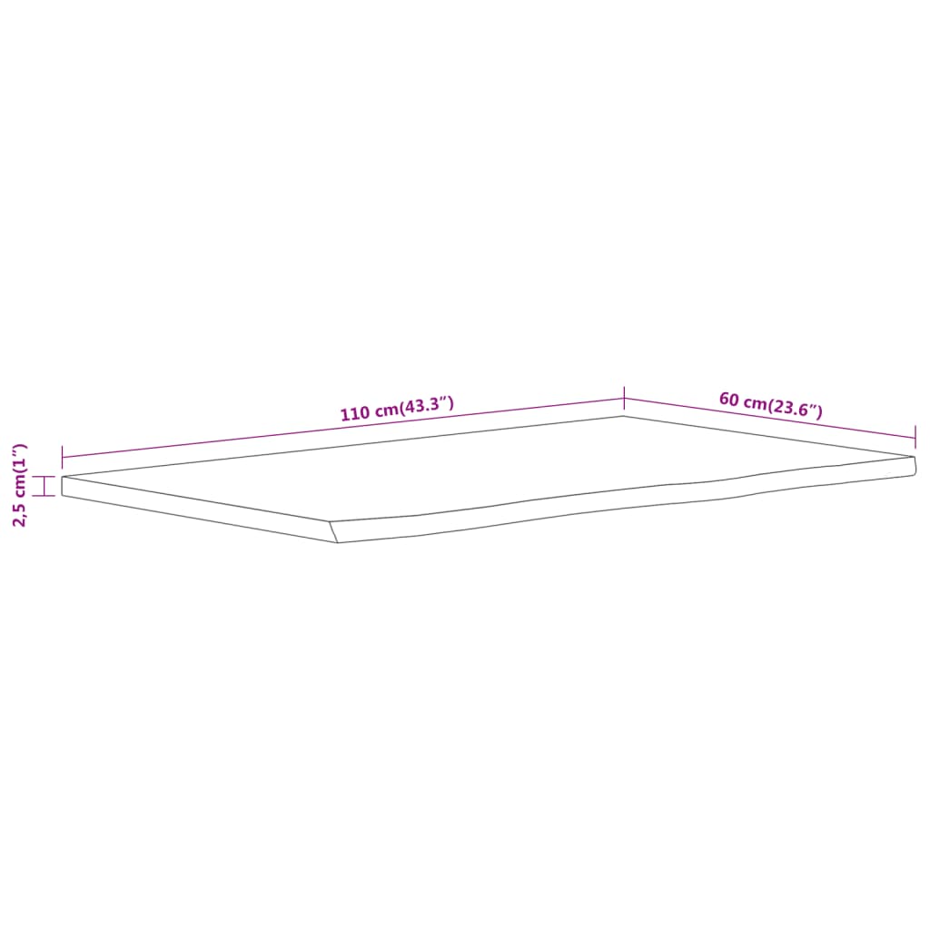 Bathroom Countertop 110x60x2.5 cm Rectangular Solid Wood Acacia