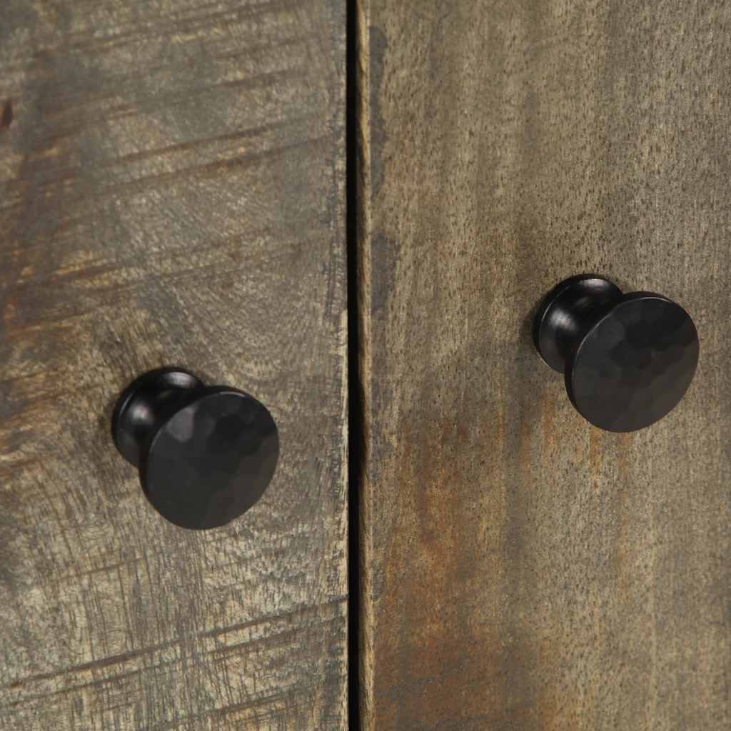- Material: Solid mango wood with light grey finish, engineered wood