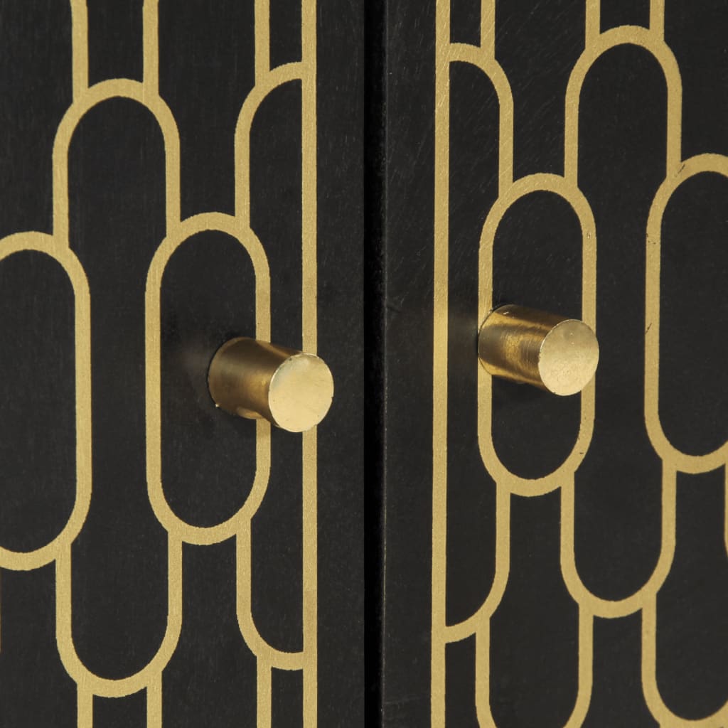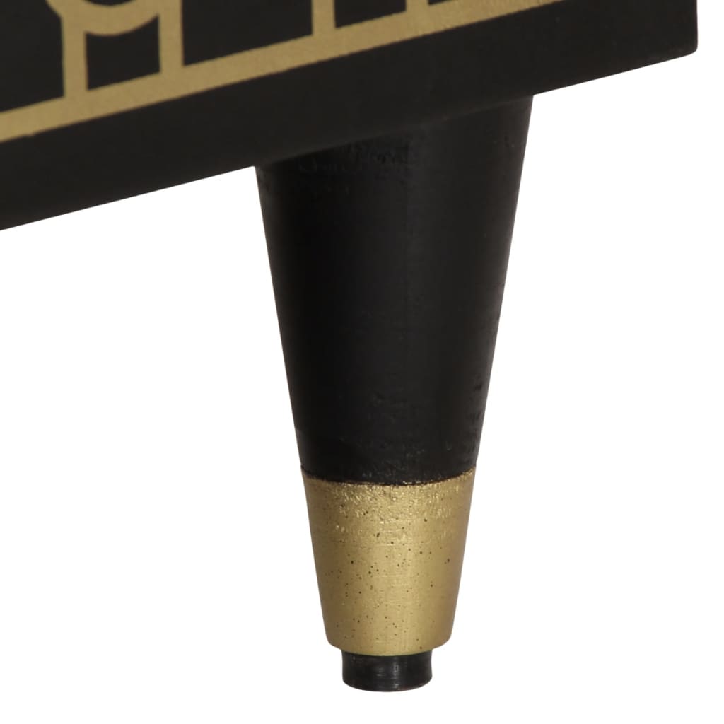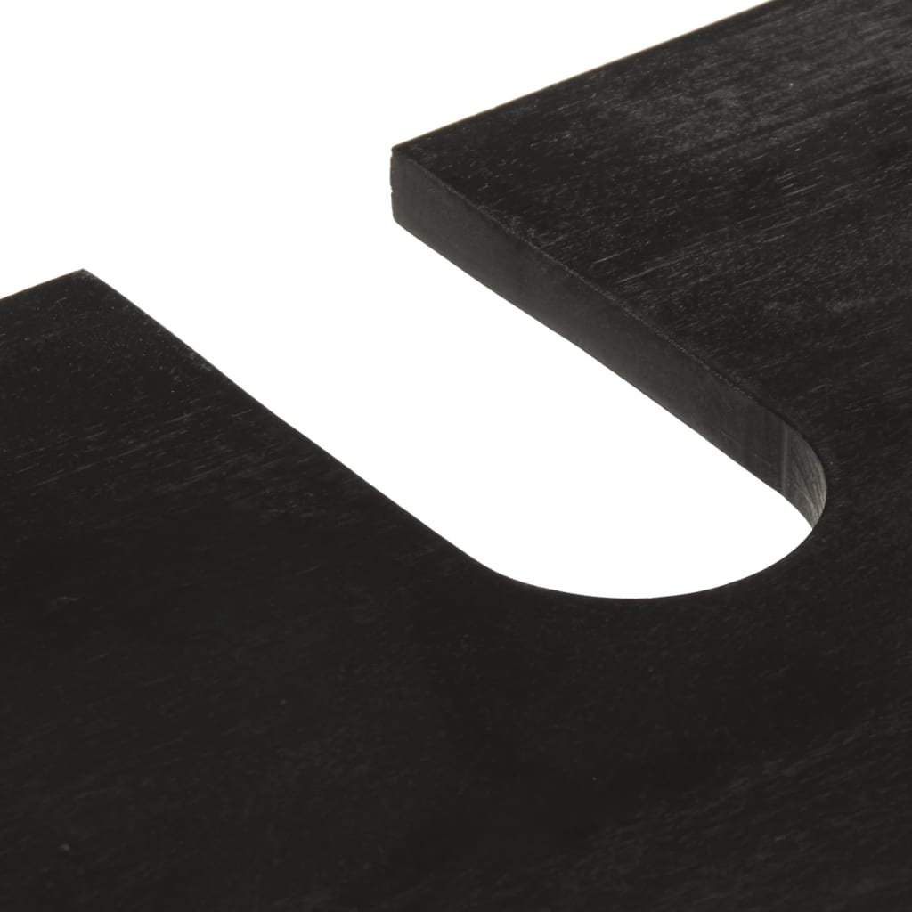- Material: Solid mango wood with black finish, engineered wood, iron