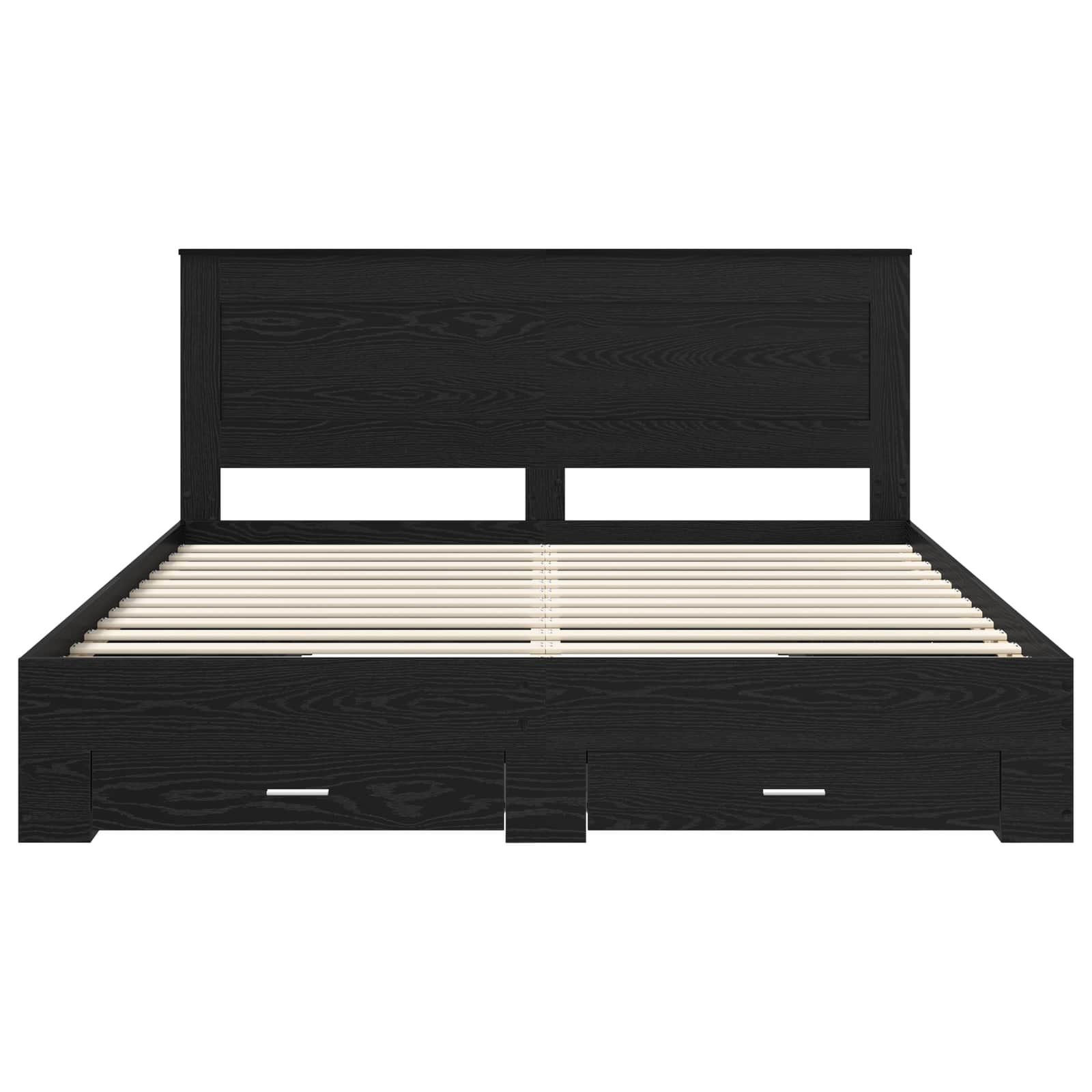This Modern Storage Bed Frame is a perfect blend of style and functionality, designed to transform any bedroom into a sanctuary of elegance. With its modern design, characterized by clean lines and minimalist ornamentation, this bed frame effortlessly complements contemporary interiors. Its engineered wood construction not only ensures durability but also adds a touch of sophistication. Ideal for urban dwellers and homeowners looking to maximize their bedroom space, this piece is designed for those who appreciate both form and functionality. The smooth finish and subtle traditional details create a cozy yet refined vibe, making it a centerpiece in any bedroom setting. Engineered Wood: Constructed from high-quality engineered wood, this bed frame combines strength and style. The material is chosen for its superior stability and resistance to warping, ensuring the frame retains its shape and strength over time. Additionally, engineered wood offers a sleek, clean look, complementing the modern design aesthetic. Generous Storage Drawers: Featuring roomy storage drawers, this bed frame is designed to help organize your space efficiently. Crafted from durable engineered wood, the drawers glide smoothly and offer ample room for bedding, clothes, or other essentials, making it a versatile choice for both small and large spaces. Rigid Slatted Frame: With a fixed slatted frame, this bed offers excellent support for mattresses, resulting in a comfortable sleeping surface. The non-flexible wooden or metal slats provide consistent stability, catering to users seeking a firm foundation for a restful night's sleep. Functional Headboard: The headboard, also made from engineered wood, enhances the bed's visual appeal while providing sturdy back support for reading or relaxation. Its design merges seamlessly with modern and contemporary decors, adding a harmonious touch to your bedroom. Care and Assembly: Easily maintain this bed frame by wiping it with a damp cloth. Assembly requires two people and can be completed with a screwdriver, ensuring that you can quickly enjoy your new bedroom centerpiece.