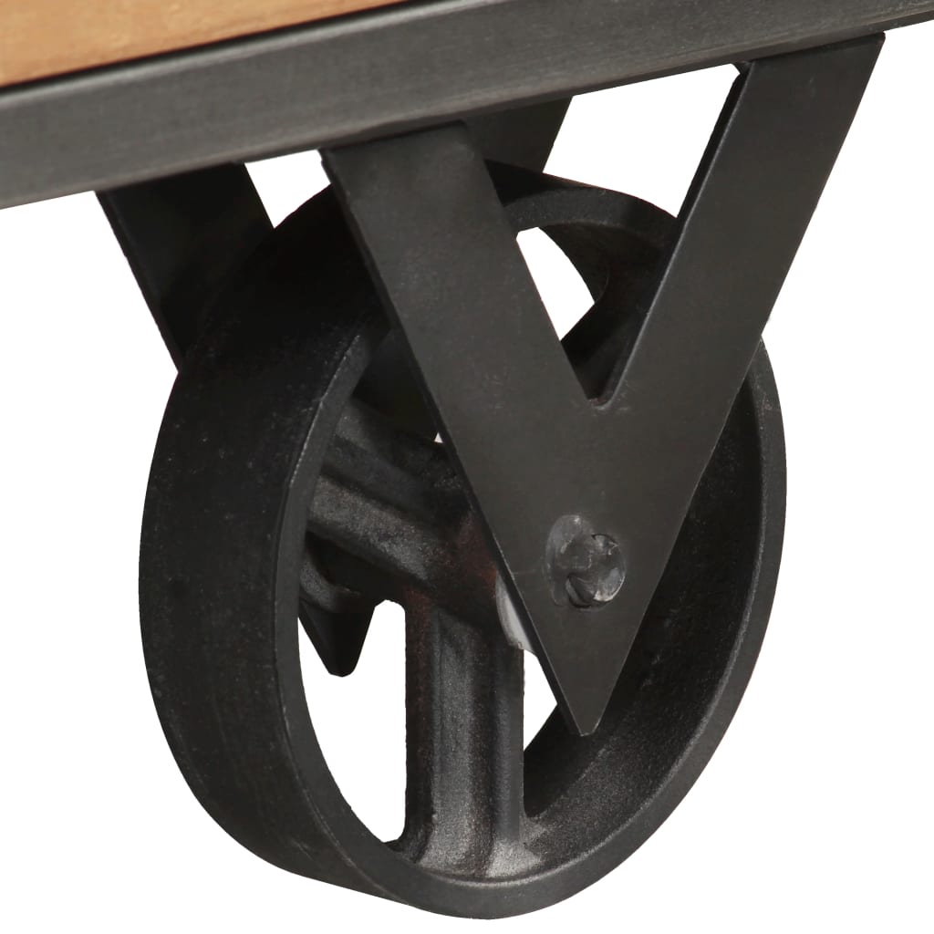 This industrial-style wooden bedside cabinet makes a great addition to your interior. It can also be used as a nightstand or side table. The nightstand is made of solid reclaimed wood, sourced from joists, floors and support beams from old demolished buildings. Additionally, it is capable to consist of different types of wood like teak, hardwood, tropical wood, mango wood etc. This means the reclaimed wood retains the characteristics of these different types of wood. Reclaimed wood is already aged, weathered and dried. Hence, they don't shrink or bend. The steel frame also adds extra stability. The side cabinet has a sturdy top to place a bedside lamp, alarm clock or anything else you might need. This bedside table has two drawers, providing ample space for keeping small items organised and within reach. It also features black wheels for great flexibility. Important note: Colours and grains vary from piece to piece, making each piece unique. The delivery is random, ensuring the exclusivity and individuality of your product.