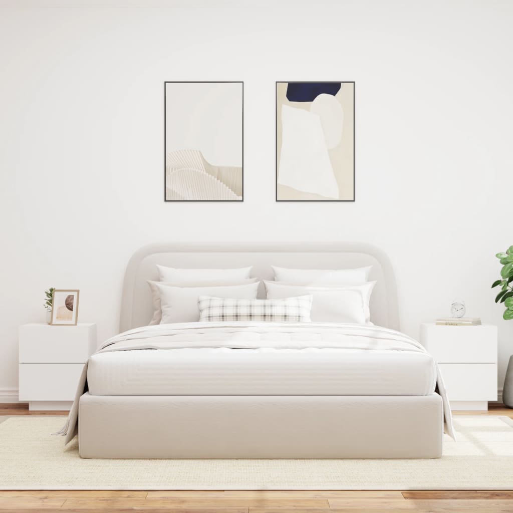 Bedside Cabinets with LED Lights 2 pcs White Engineered Wood