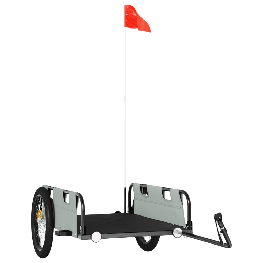 This bike trailer is perfectly suited for all transport purposes by connecting it to your bicycle. Robust construction: This bike trailer has a sturdy construction that is made of powder-coated iron. Iron is a strong and hard material. It's a solid favourite in industrial and furniture construction. The powder coating on the surface of iron creates a protective layer against rust, corrosion, and wear.Durable material: This bicycle trailer is made from oxford fabric which is lightweight, water-resistant, and also resistant to damage and dirt. The yarn used for weaving makes the fabric durable and breathable. It is also naturally resistant to wrinkles.Safe riding: The bicycle cargo trailer has two large wheels that allow for smooth and superior tracking on various grounds, and the reflectors on the rear provide visibility in the dark, plus the flag can increase traffic safety.Wide applications: Easy to be attached to your bicycle, this bike cart can carry whatever you need to take with you, such as luggage, plants, tools, or groceries.