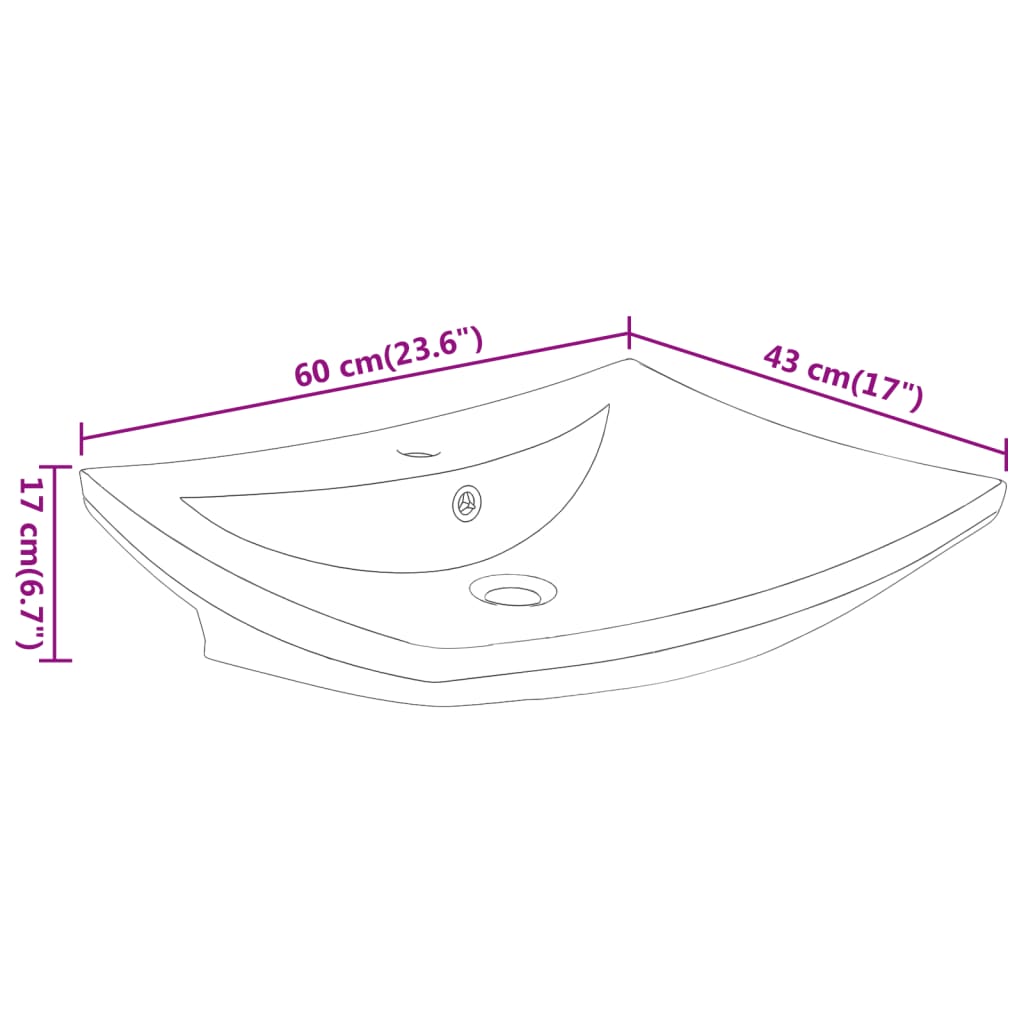 This rectangular wash basin, made of premium ceramic, will be a stylish addition to any bathroom, washroom or powder room. Its high gloss finish brings a modern yet elegant design. This artistic ceramic basin is more than just a practical vessel for everyday use, but it is an adornment for your living space. It will definitely suit any interior style. In addition, the basin is quite easy to clean. An overflow is equipped to flow water out when it gets too full. A 3.5 cm faucet hole is included to install a tap. The drain hole is 4.5 cm in diameter. Please note that no drain is included in delivery. If you want to wall mount this basin, it requires bolts. Please note these bolts are not included in the delivery.