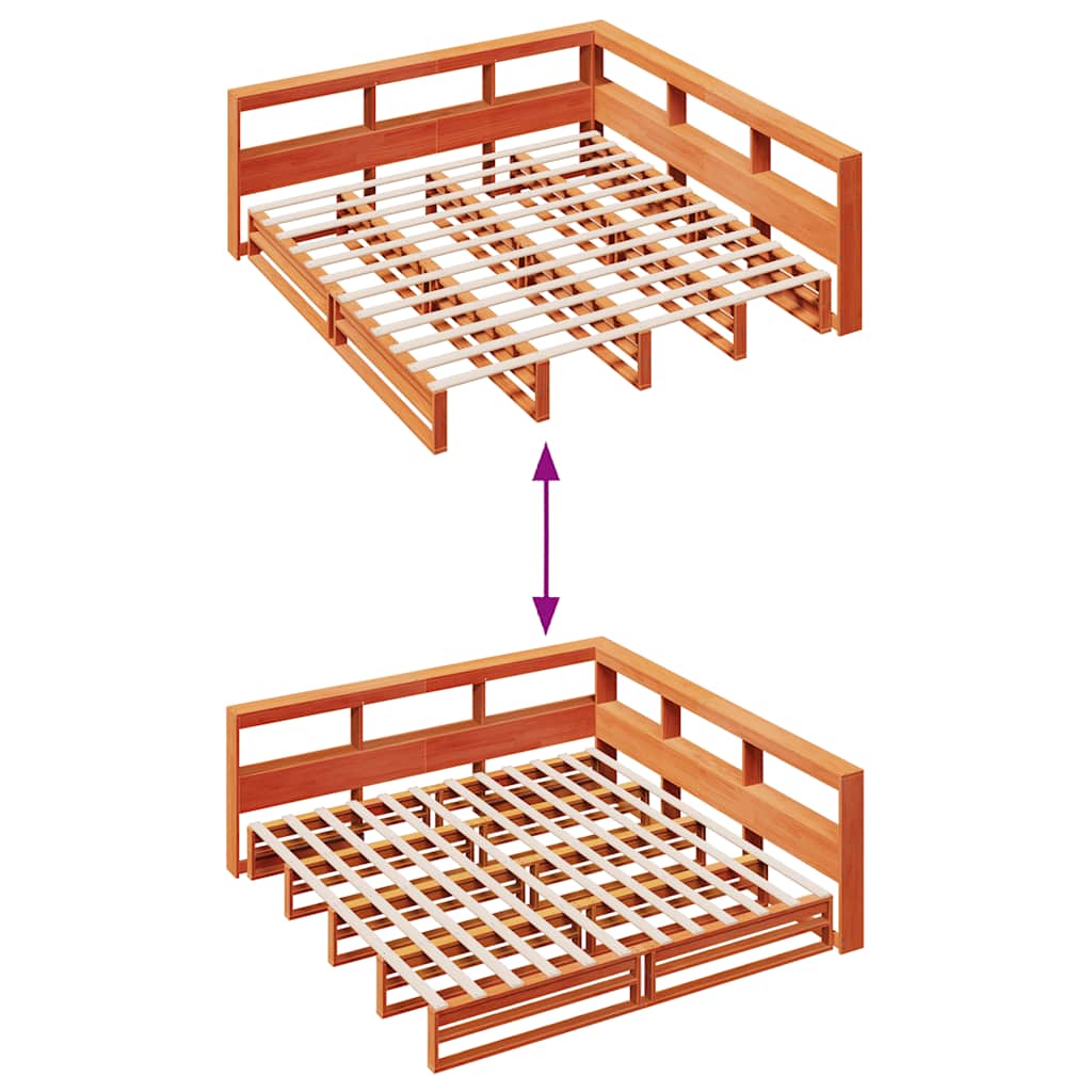 Bookcase Bed without Mattress Wax Brown 180x200cm Solid Wood Pine