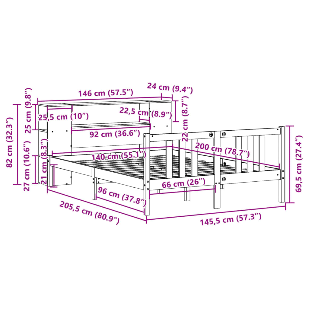 Get a better restful night's sleep from this bookcase bed! It makes a welcoming addition to any bedroom. Stable and long-lasting frame: Solid pinewood is known for its strength and durability. Its straight grains and distinctive knots contribute to its rustic charm. Slatted base for optimal support: The bed frame is equipped with a slatted base for support and breathability for your mattress. Ample storage space: This bookcase headboard offers ample storage space to keep books, decorative items, or personal belongings within easy reach, reducing clutter in the bedroom.Practical footboard: The footboard not only contributes to the overall stability of the bed frame, providing a safe sleeping environment, it also secures your mattress in place and prevents blankets, sheets and other bedding from falling off the end of the bed, maintaining a neat appearance.Space saving: This headboard is a space-saving option that can replace the need for a bedside table, helping maximise your bedroom space, and making it ideal for small or limited spaces. Good to know:A mattress is not included with this bed. We do offer a various selection of mattresses. You can check our shop for a matching mattress.