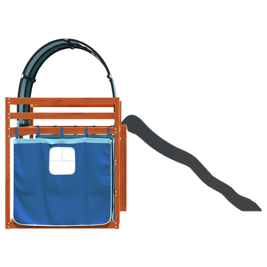 Bunk Bed without Mattress with Slide and Curtains Blue 90x200 cm