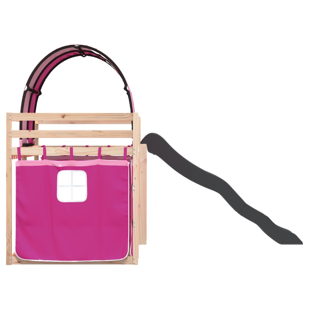 Bunk Bed without Mattress with Slide and Curtains Pink 90x200 cm