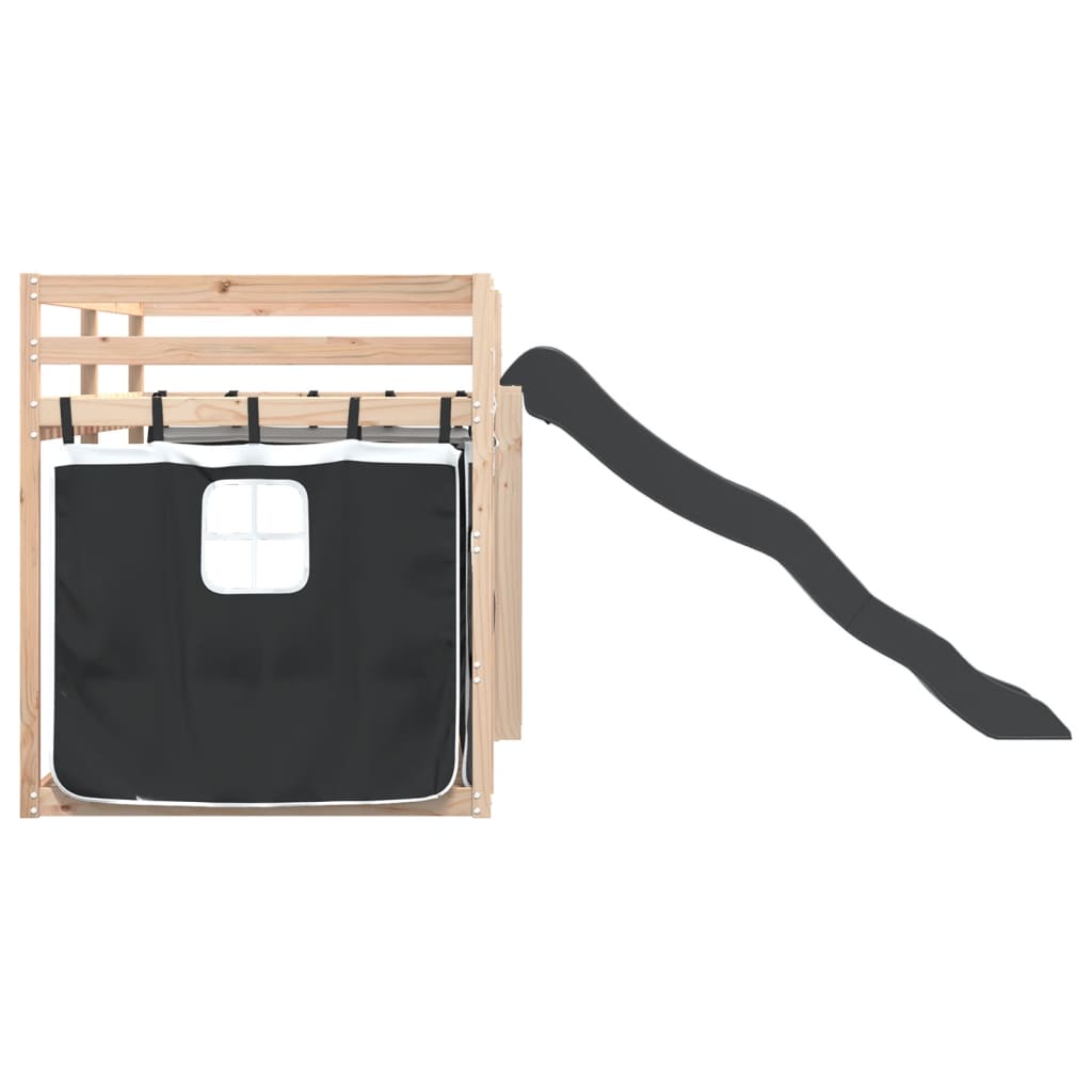 This wooden bunk bed is elegant and functional, making it a perfect addition to any room with limited space. Solid pine wood: This bunk bed is made of solid pine wood for stability and durability. Pine wood has a straight grain, and the knots give the material its signature, rustic look.Great fun: You can combine the curtains with the low bunk bed to create your child's secret base, providing great fun at bedtime and adding a focal point to the bedroom!Safety guardrails: The top bunk comes with safety guardrails on all 4 sides, so your child can sleep without worrying about falling off.Convenient ladder and slide: This double bunk bed has a fun slide that brings joy and turns their room into an indoor playground. The combination of a climbing ladder and slide makes bedtime livelier and more interesting for children.Sturdy slats: The plywood slats provide good weight distribution, ensuring that the mattress stays in place with every twist and turn of your body during sleep. Good to know:A mattress is not included with this bed. We do offer a various selection of mattresses. You can check our shop for a matching mattress. Warning:To prevent it from tipping over, this product must be used with the provided wall attachment device.