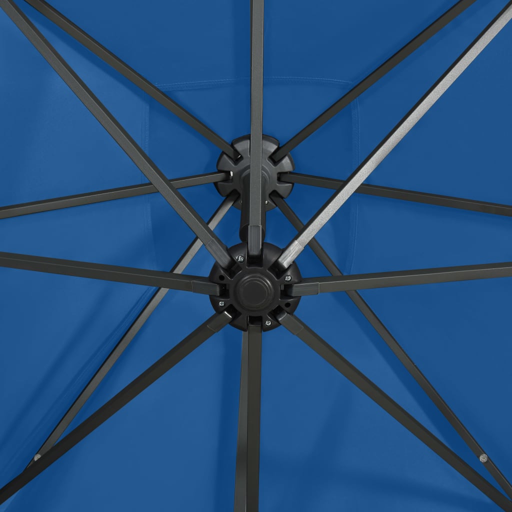 Cantilever Garden Parasol with Pole and LED Lights Azure Blue 250 cm