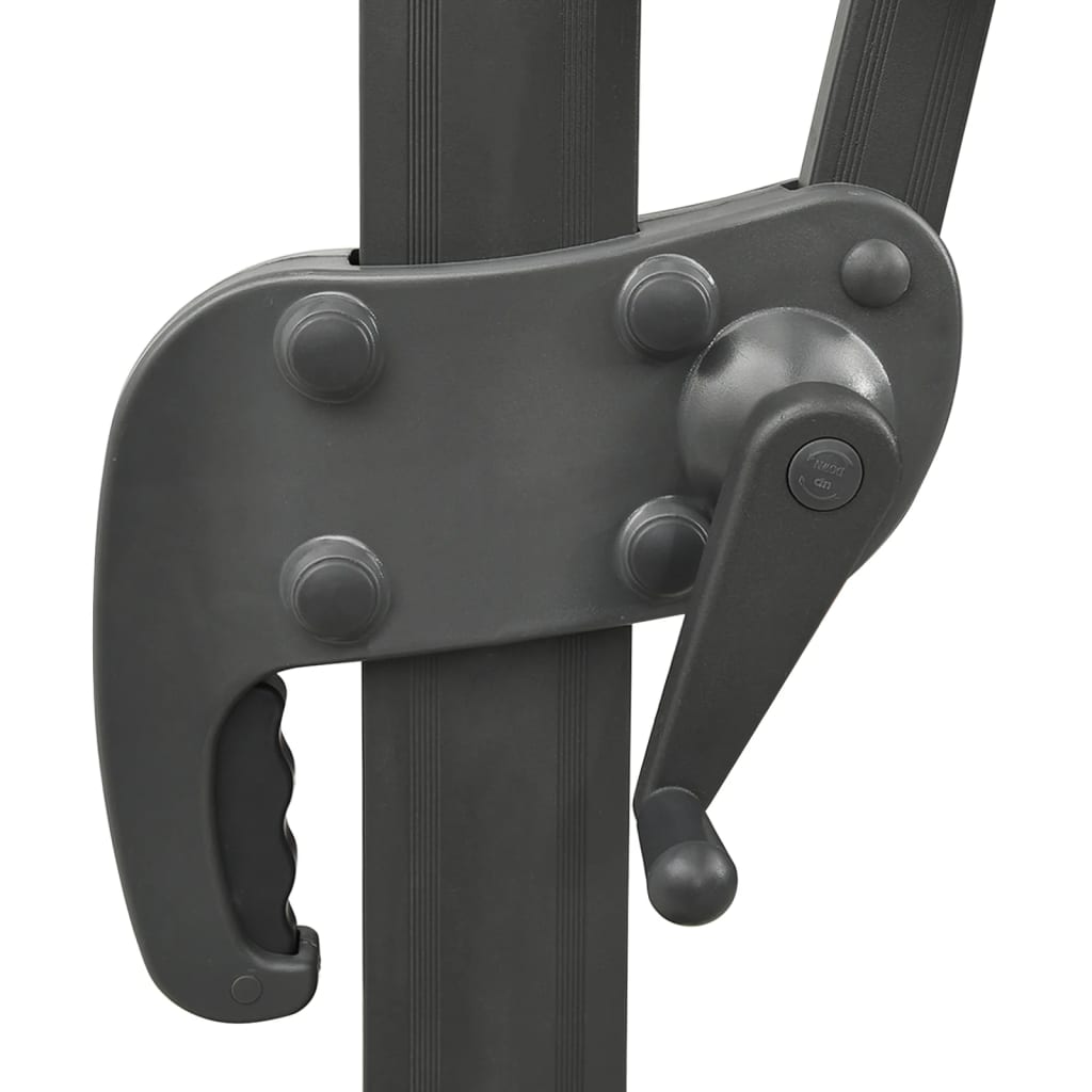 This elegant cantilever garden parasol with LED lights is an excellent choice for creating some shade and protection from the sun's harmful UV rays. When the sun goes down, the LEDs will illuminate your outdoor living space. The parasol cover, made of UV protective and anti-fade polyester, provides you with optimum protection against the sun and is easy to clean. It features a sturdy cross base for added stability. The garden parasol's exclusive design allows you to tilt and rotate it 360 degrees to block the sun from any angle. The strong aluminium pole, along with the 8 ribs, makes the parasol very stable and durable. This garden umbrella can be easily opened and closed thanks to the crank mechanism. Additionally, this patio parasol features 24 LEDs to illuminate your outdoor living space and create a cosy and romantic ambience when the sun goes down. Please note: We recommend treating the umbrella fabric with a waterproofing spray if it is subjected to heavy rainfall.