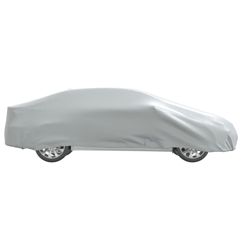 This car cover for sedan protects your vehicle against UV rays, snow, rain, frost, dust, fallen leaves, industrial pollution, and bird droppings, making it ideal for indoor and outdoor use. All-weather protection: This car cover is made from breathable polyester with a PU coating, ensuring it is waterproof and UV-protective for year-round protection. The double-stitched seams enhance its strength and durability.Silver coating for heat insulating: The silver surface of the car cover reflects more sunlight and UV rays, keeping your car cooler in hot weather. This helps protect your car's interior from heat damage.Windproof design: The elastic edges of the cover ensure a snug fit for your car, while the adjustable straps with buckles at the bottom keep it secure, even on windy days.Easy storage: This car cover comes with a convenient storage bag, making it easy to store when not in use. Good to know:Before purchasing, please take precise measurements of your car to ensure you select the correct size.