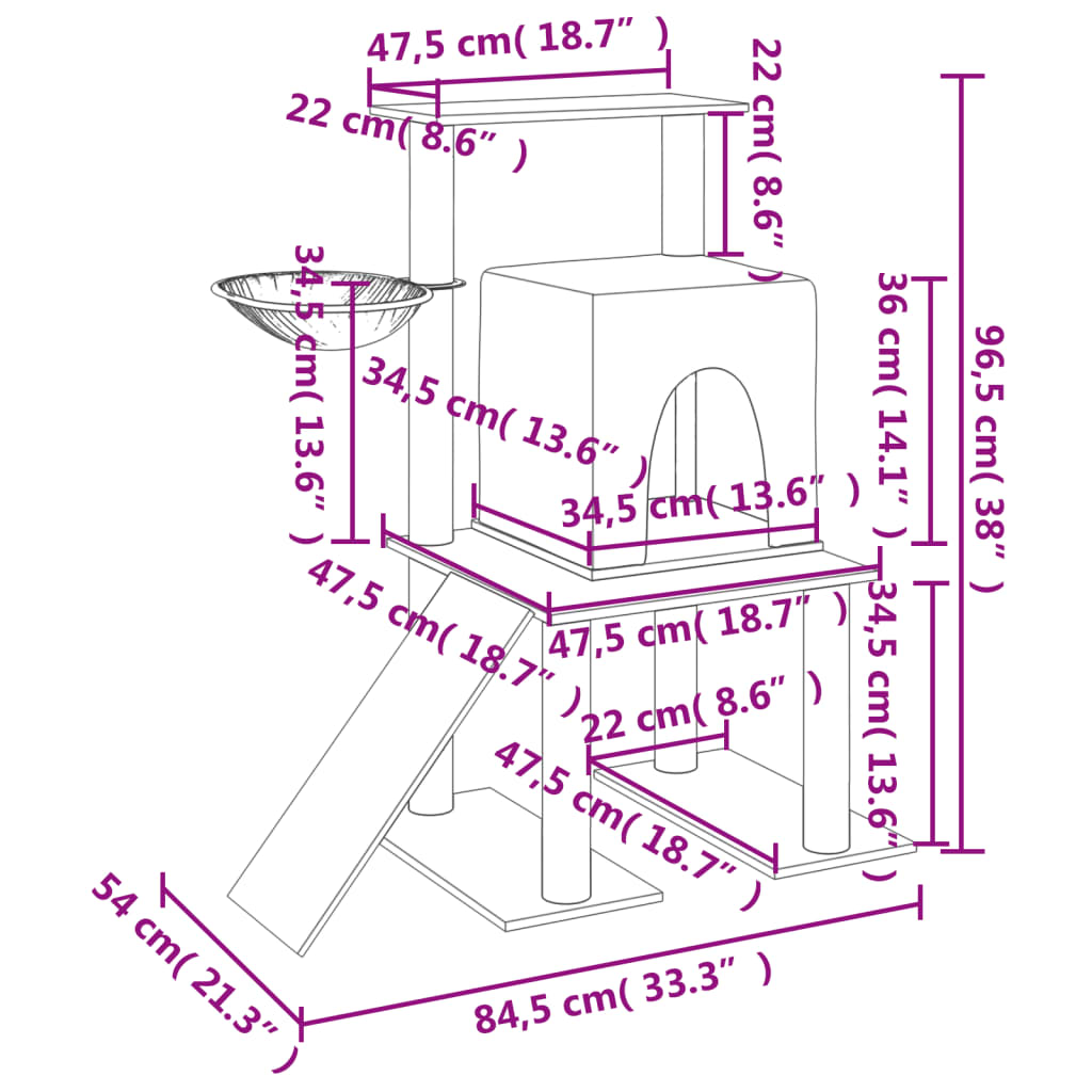 Keep your lovely cats entertained endlessly with this all-in-one cat tree! All-in-one cat tower: The multi-level cat furniture is designed with a house, a ladder, a basket and a platform, providing a perfect place for your cats to climb, perch, scratch, hide, and also relax.Soft plush material: The extra-thick and soft plush is well ventilated, scratch-resistant, super comfy and warm.Natural sisal posts: The resilient and strong natural sisal posts of the cat scratching tree are perfect for your beloved cats to satisfy their scratching instinct and prevent them from scratching your furniture.